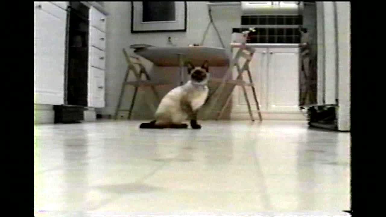 Trick cans played on garbage truck driver. Cans are tied together with string / rope, practical joke played on garbage man.