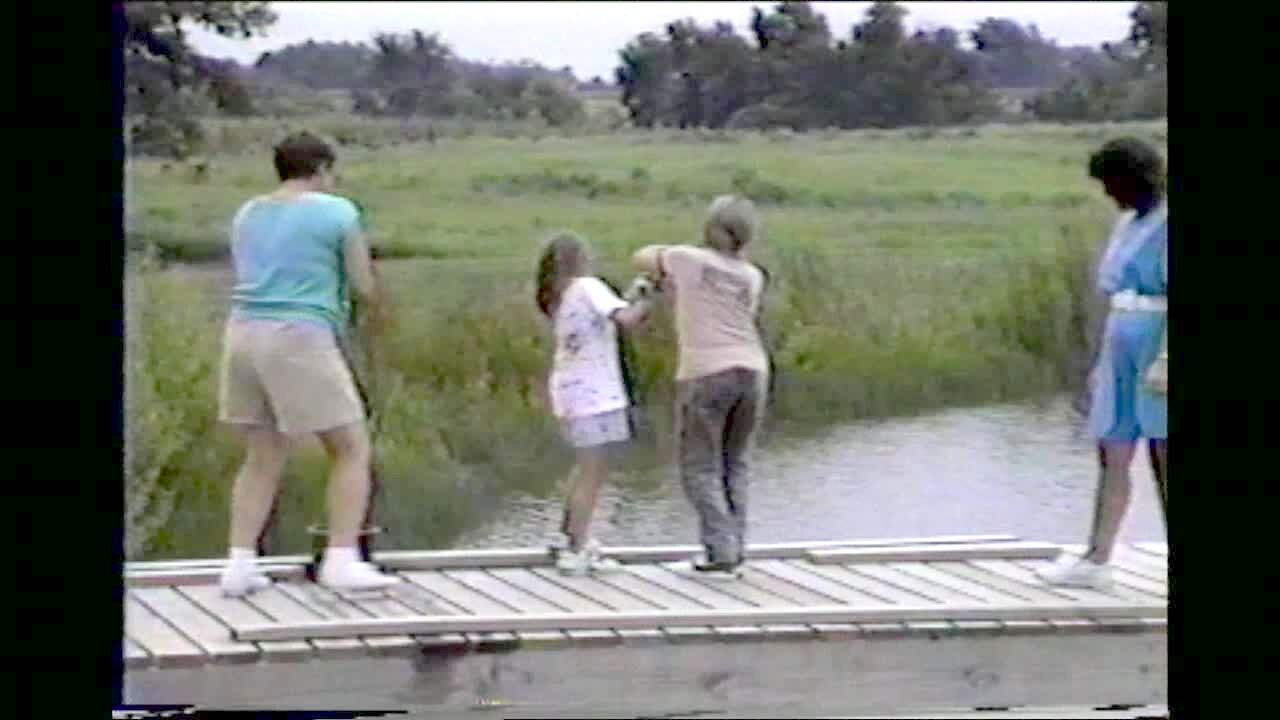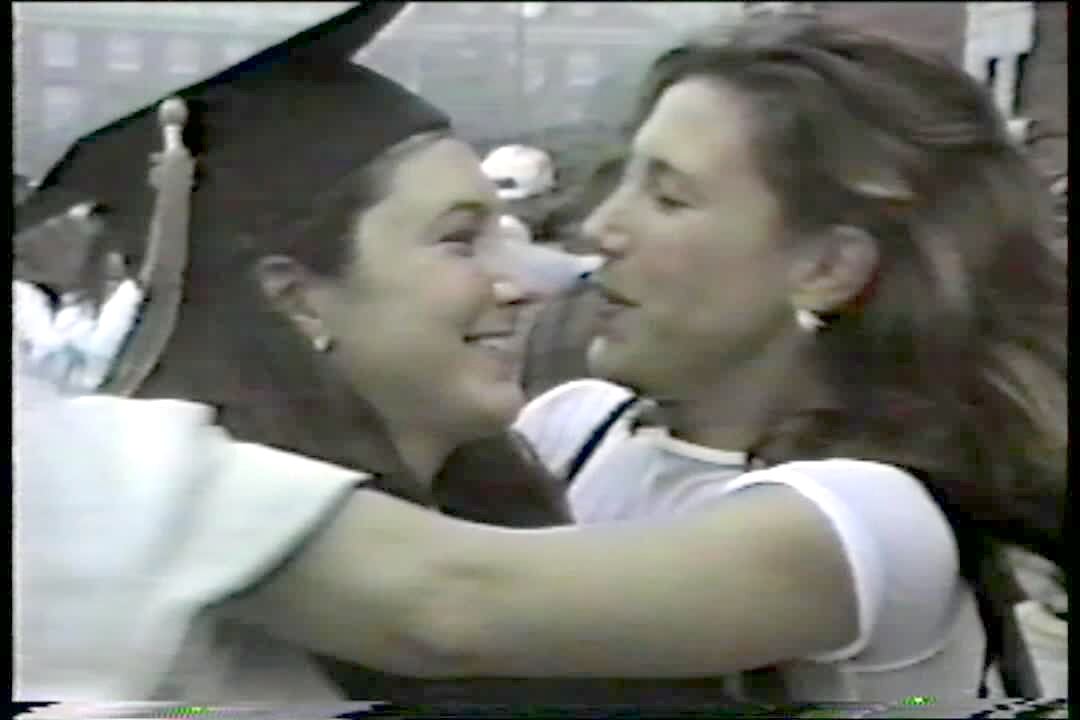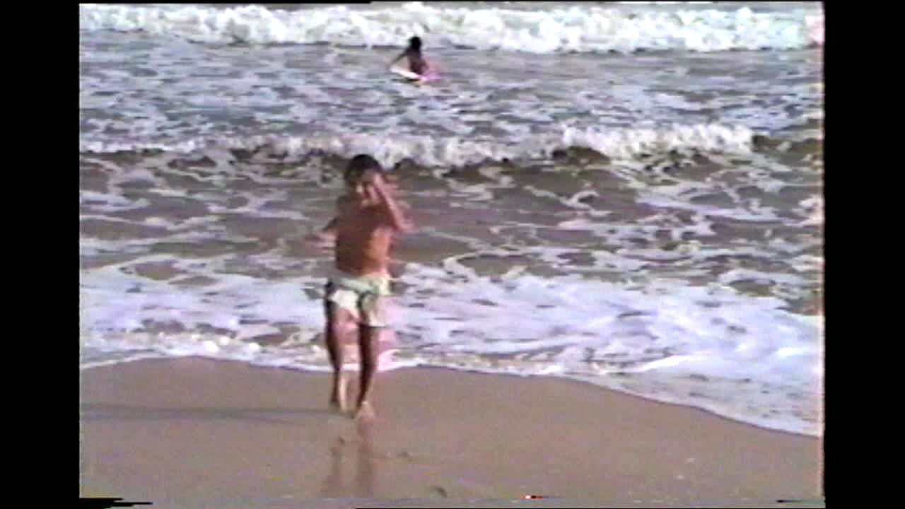 WOMEN OVERBOARD Woman holds girl's legs to ease her into water, they both topple off boat