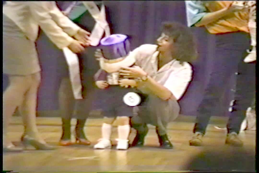 As graduation speaker says, "the world awaits you", a cardboard globe drops to the stage.