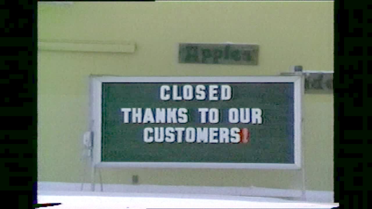 A man walks to a truck and falls on ice. Security Camera Footage.