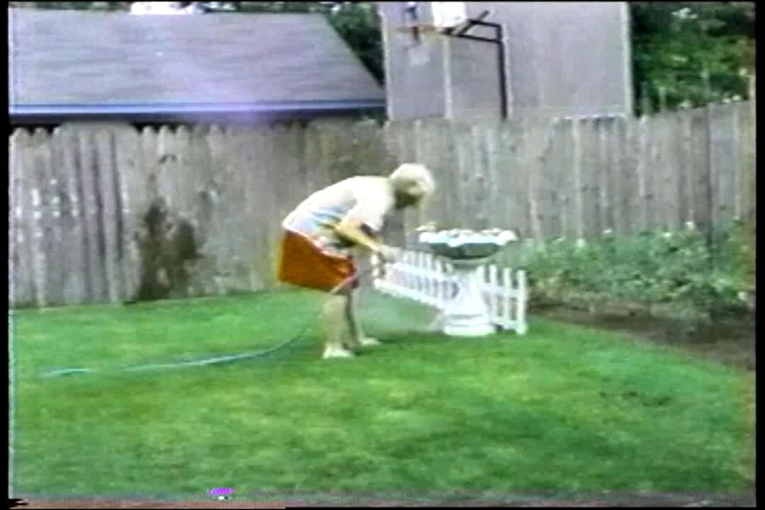 AA: Surprise Woman sanding house is scared by camera and screams Labor laughs