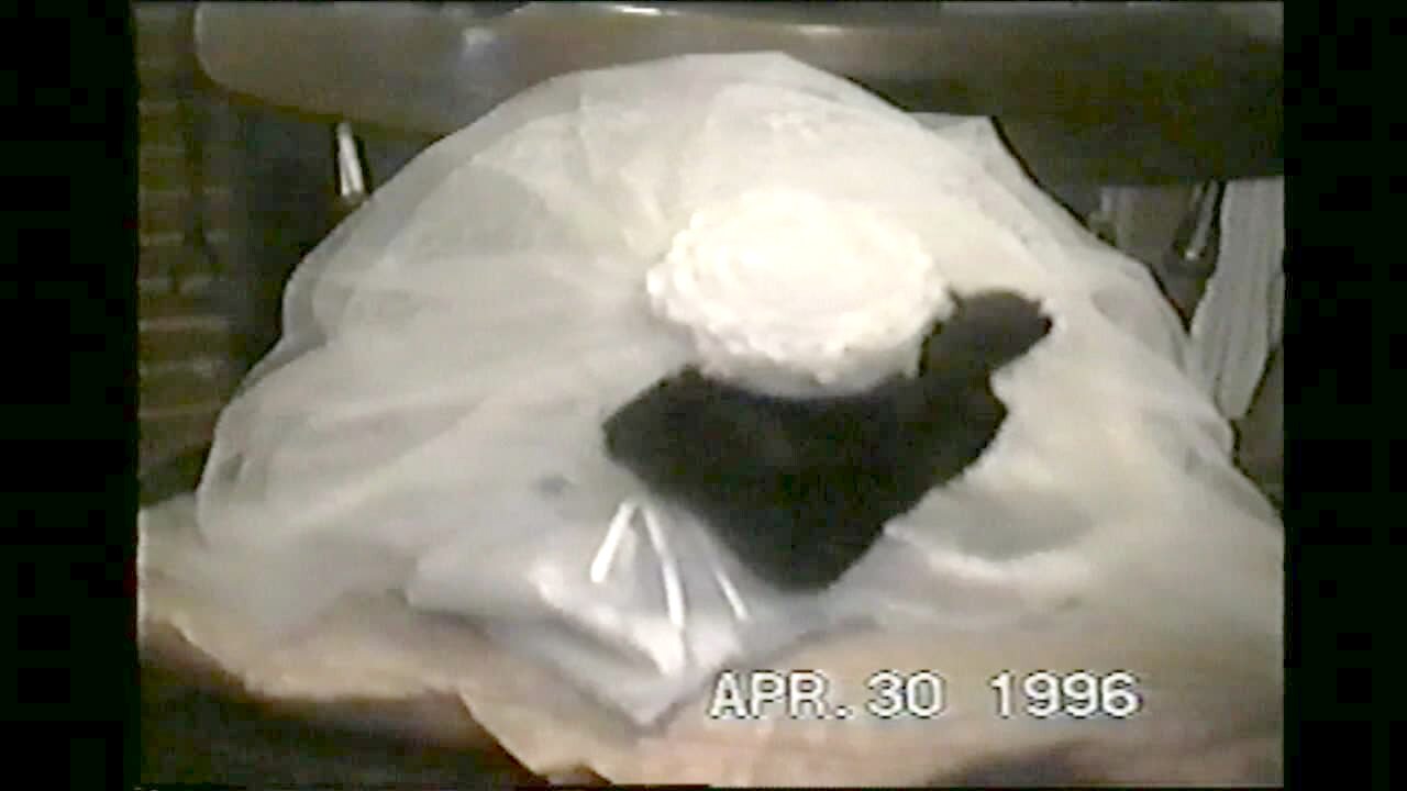 Young girl swings stick at pi�ata and it hits man in the crotch very hard.