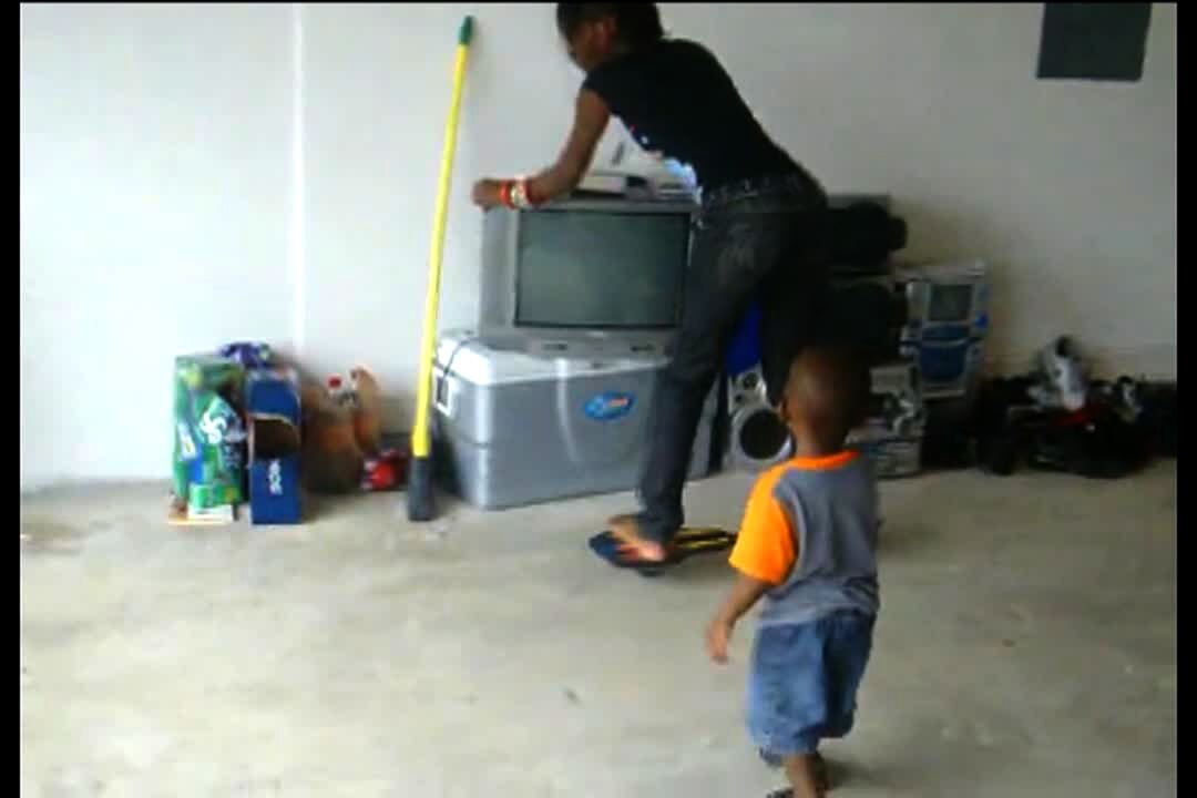 A young boy holds a box for a gingerbread house and a woman says she can't wait to see what he did. He says "this is pretty good for a child" and he slowly lifts the box to reveal the pieces of the house lying on a plate unassembled in the dining-room. Then says "Nailed it!"