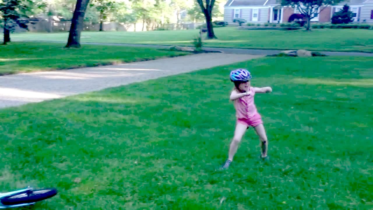 A family plays Badminton in the front yard and a young boy gets frustrated and throws a tantrum when he cannot hit it.