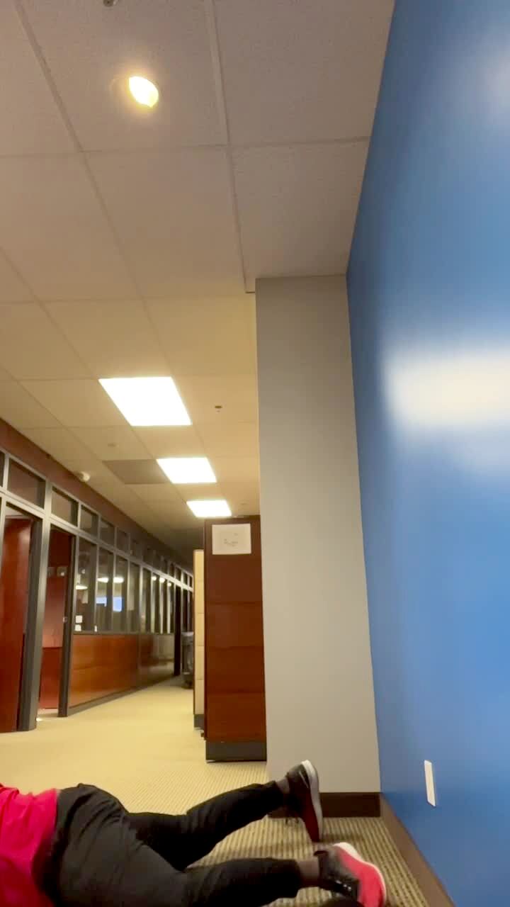 A young man walks through a doorway and his face hits a thin wall of saran wrap.