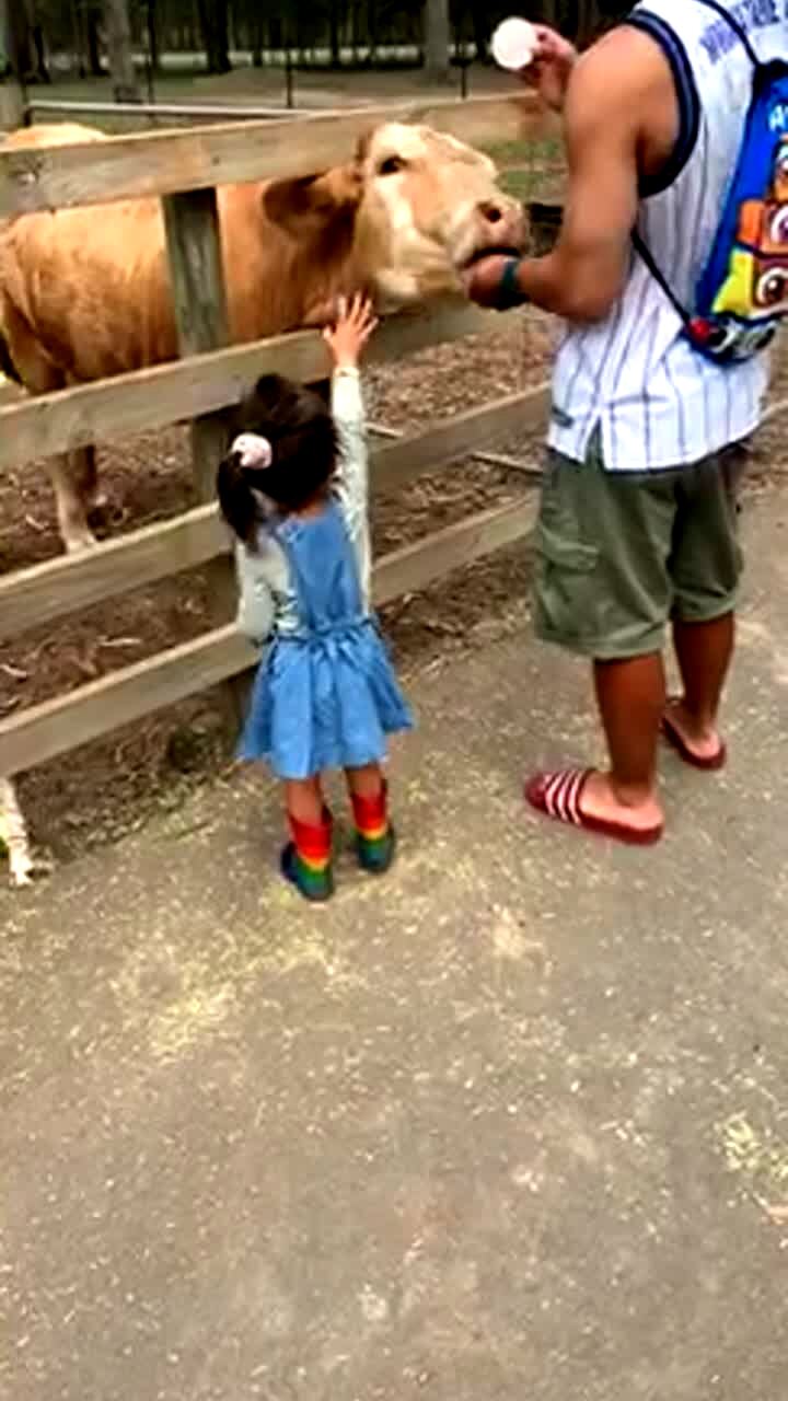 A young girl says "bye" to her mom while she leaves the house. Once the woman leaves, the girl turns to the man with the camera and says "whew, mom's out of here dad."