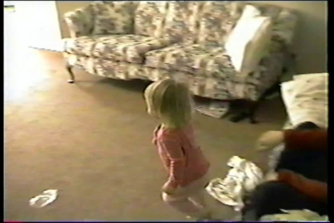 A woman finds her dog with a fish in his mouth in her bedroom. She tries to get him out of the house, but he walks into another room and hides under the bed.