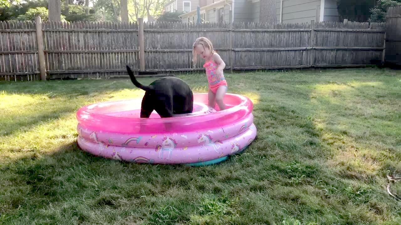 A tot girl repeatedly says, "Oh my gosh" while she looks at the Christmas tree her father decorated in the living room.