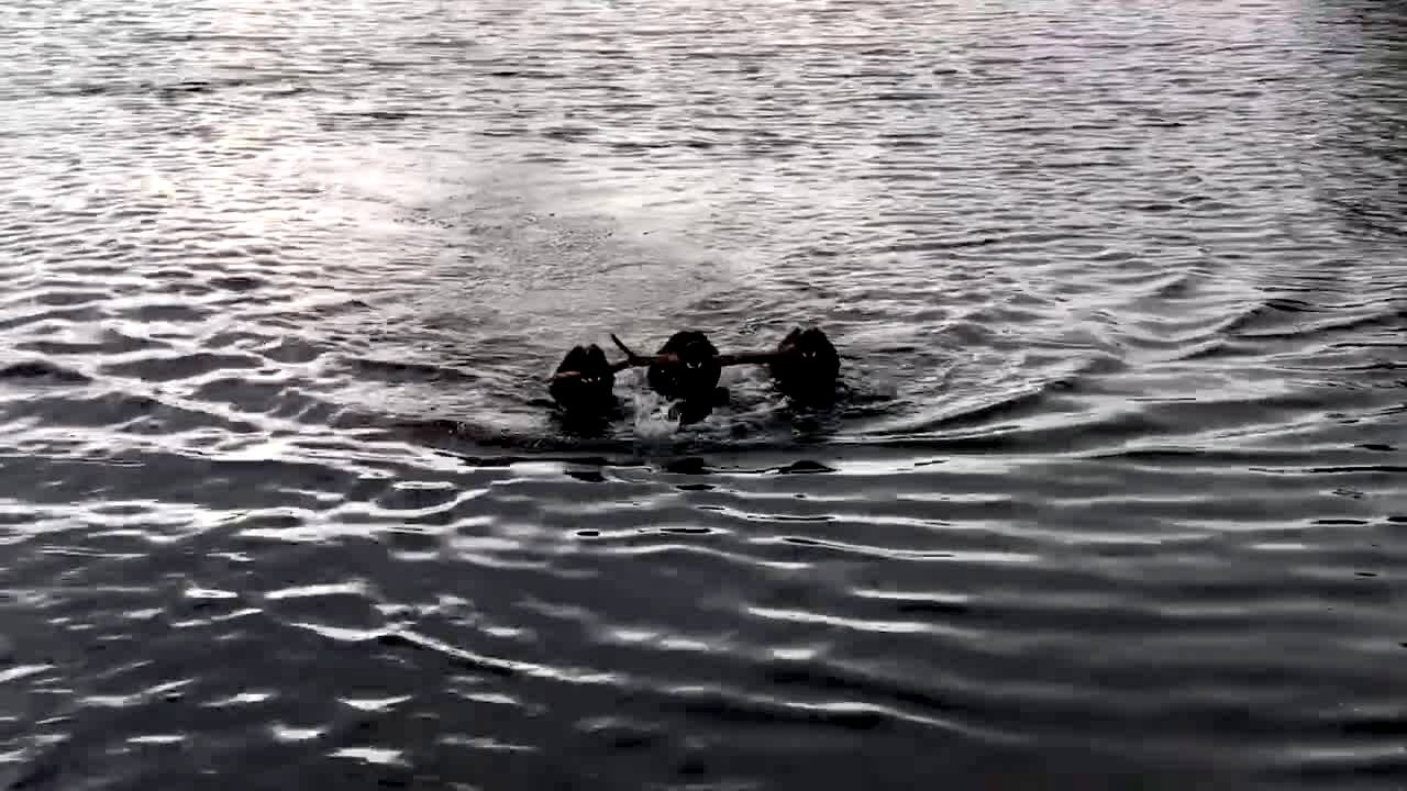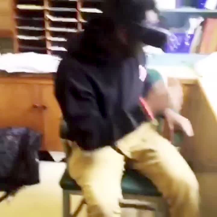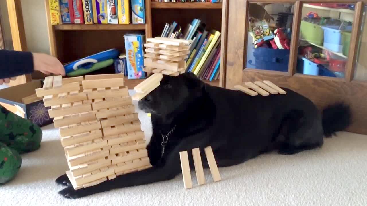 A black cat gets his head stuck in a gift bag on Christmas and walks backwards until he's able to get it off.