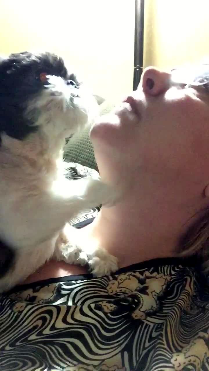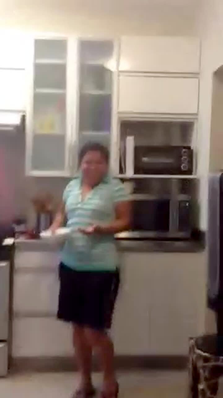 A woman tapes herself walking into her mother's house to surprises her for Christmas. Mom has funny surprised expression