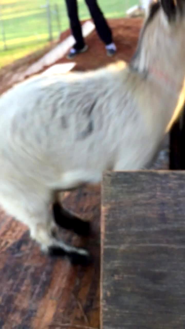 A teen girl jumps at her Christmas tree and knocks it over indoors. Vine/Instagram.