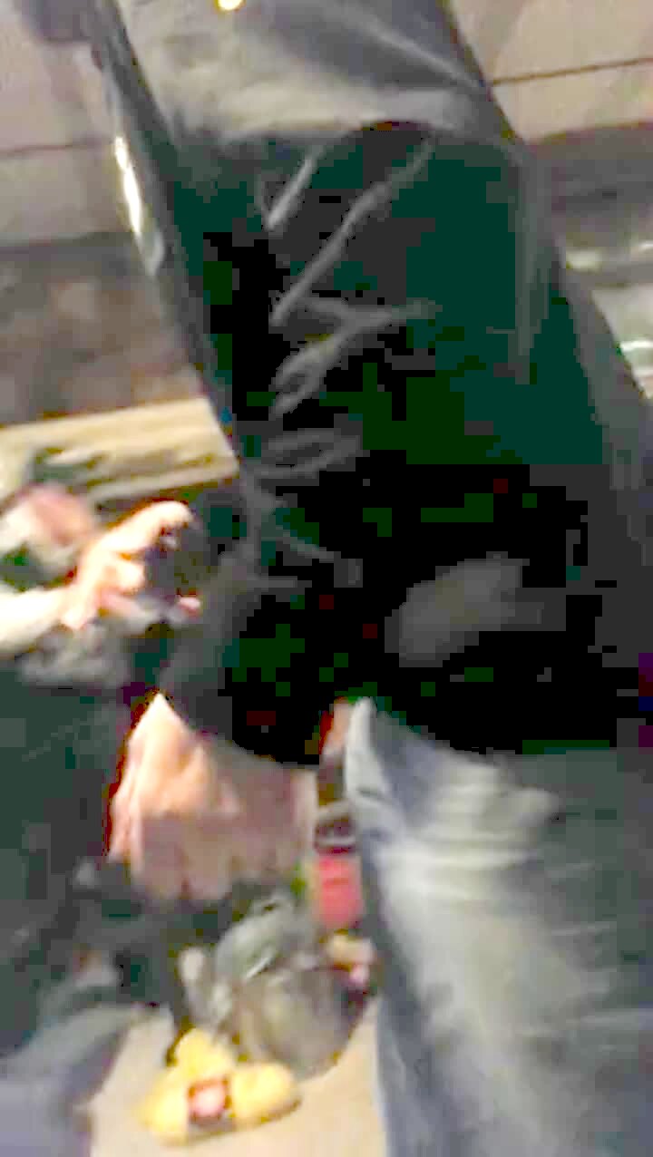 Security footage shows twin boy tots playing with Christmas tree ornaments as a woman's voice comes on a loud speaker and says "Santa's watching" and will not give them presents.