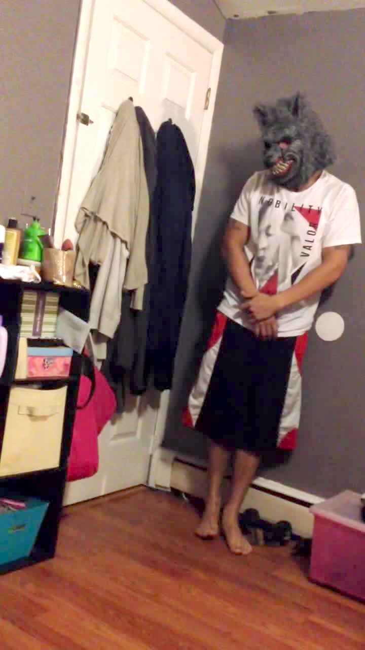 A teen girl lies down on an electric skateboard and rides around her room when her dachshund dog hops on her leg and humps it. hoverboard