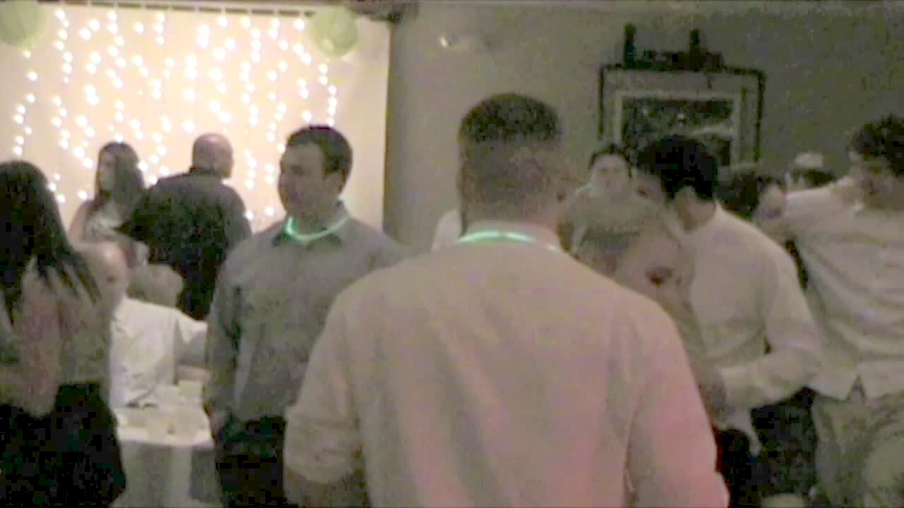 A man wears a Santa hat, drinks, dances, and sings in his shirt and underwear to "Hound dog" by Elvis Presley before he backs into a christmas tree and falls down, pulling various other decorations down with him.