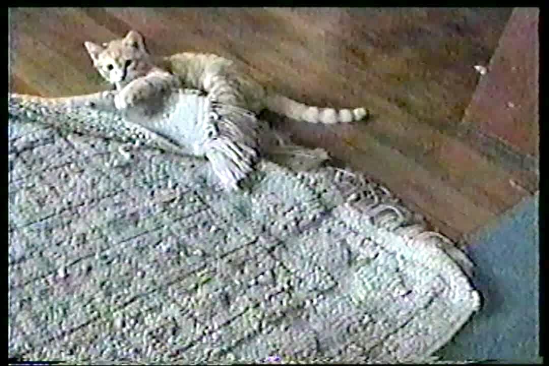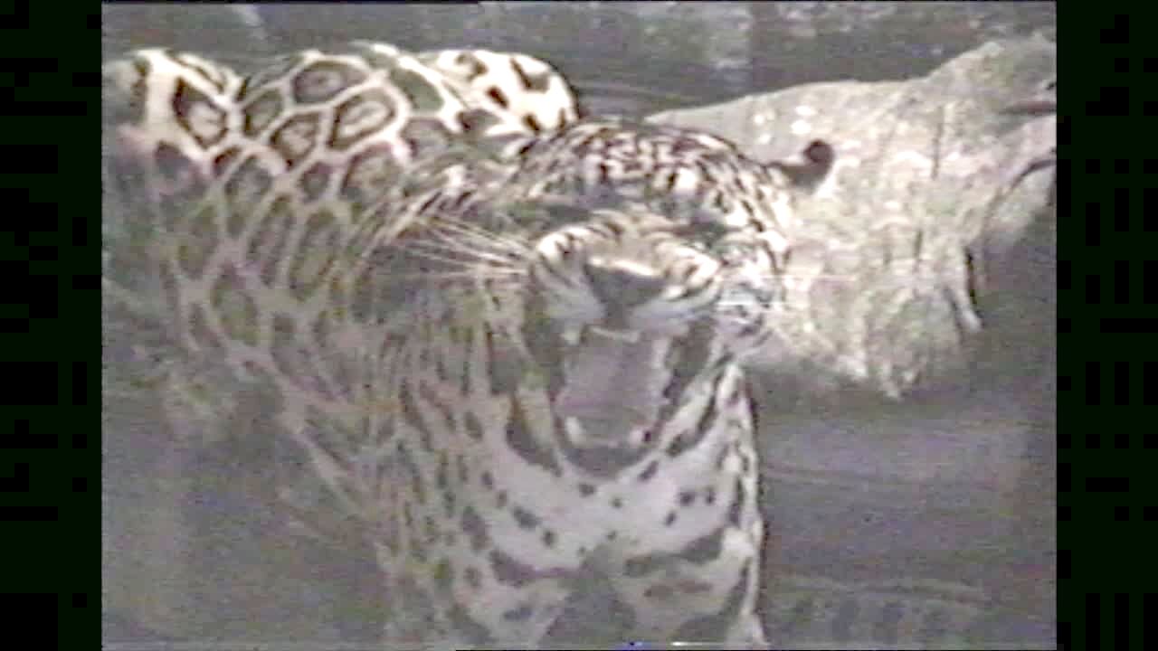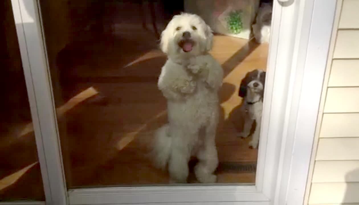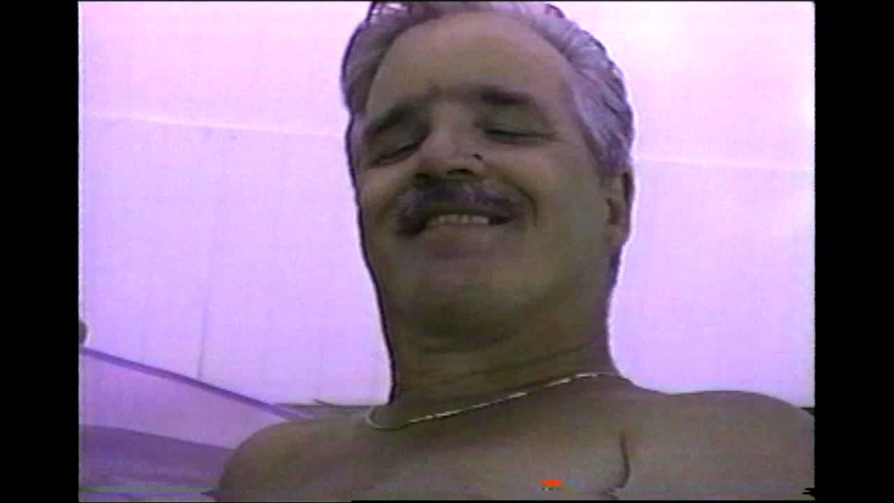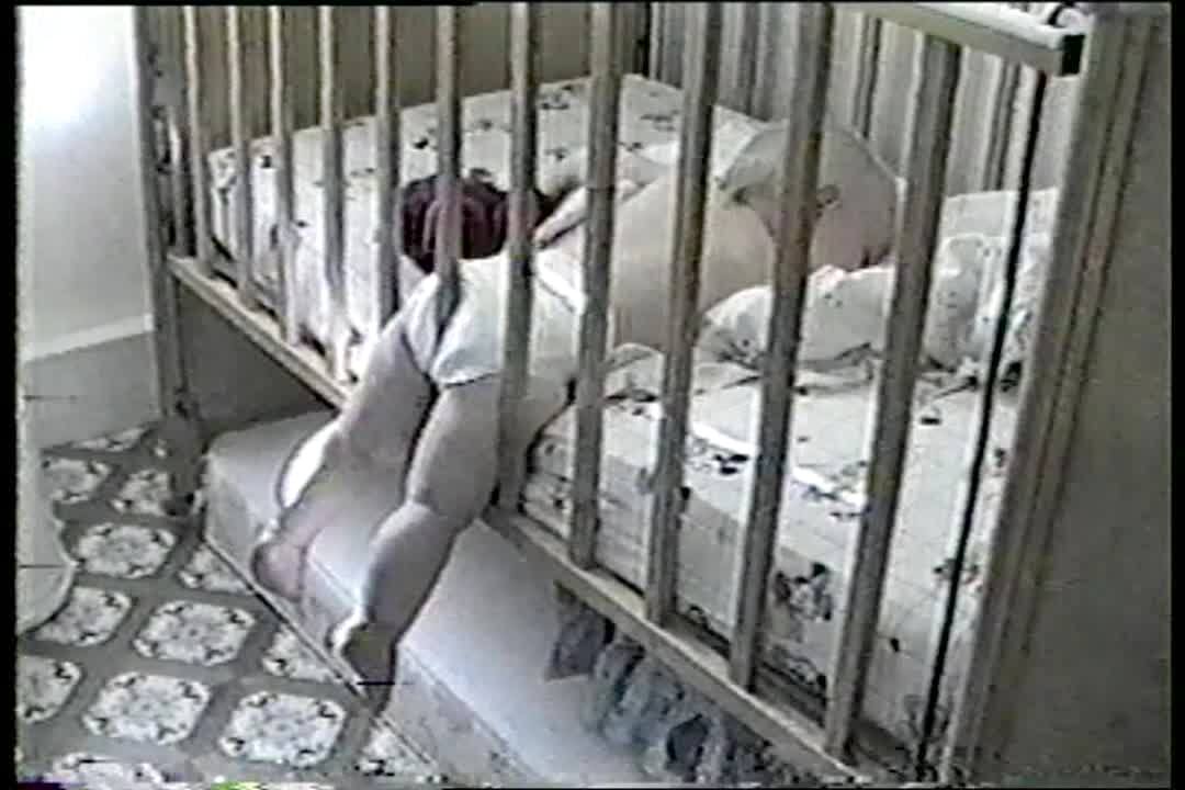 Boy sings in the shower in a high pitched voice behind sliding door. He screams & closes the door when he sees the camera.