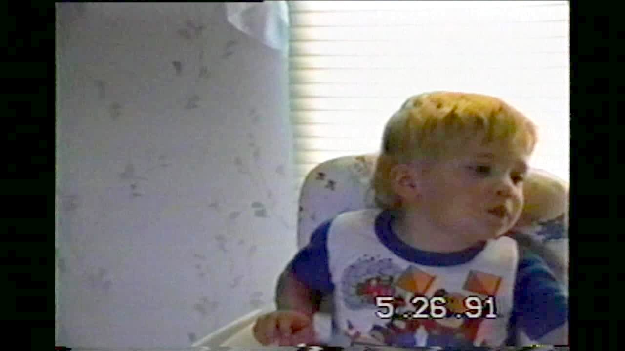 A young boy in a kitchen reads a yogurt label and says the amount of cholesterol is "oh my god." The woman with the camera says it's 0 milligrams (0mg).