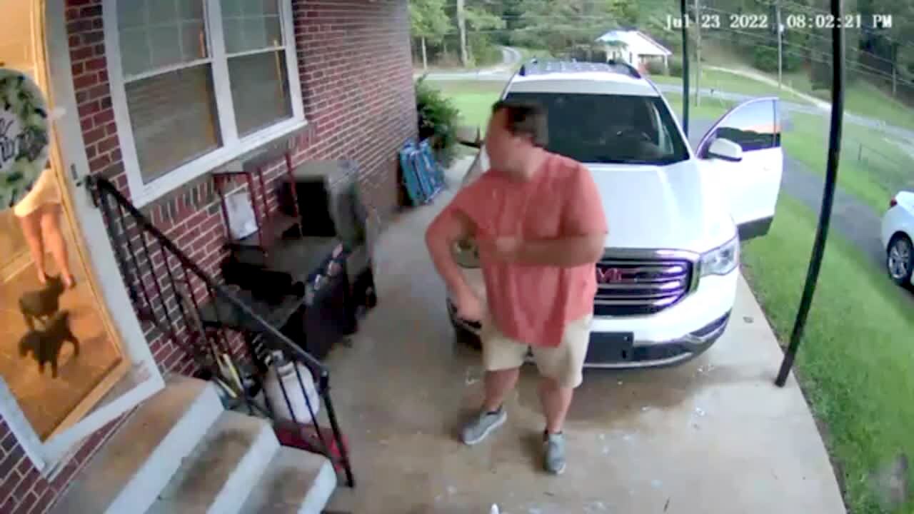 A young boy runs into the house and crashes into a glass door that he thought was open. Security footage.