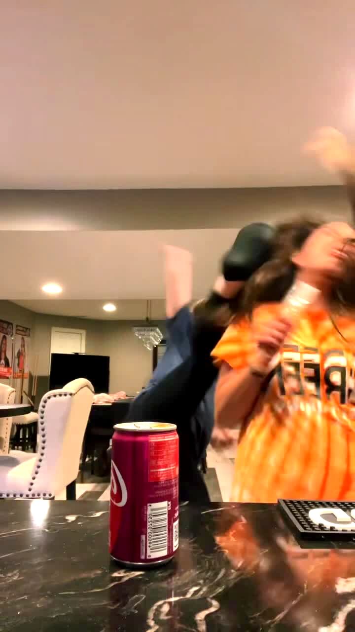 Two young girls attempt to hang upside down from a bunk bed when it tips over on top of them while they make a TikTok video. Music rights not cleared.