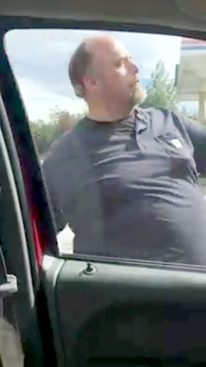 A woman brushes her teeth in the car and tries to spit out the open window, but toothpaste gets all over her face and hair.