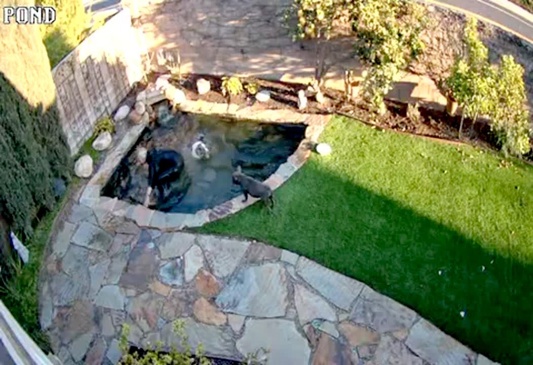 Dogs squeal and whine as they sit behind a gate when climbs up, topples and flips over to the other side.