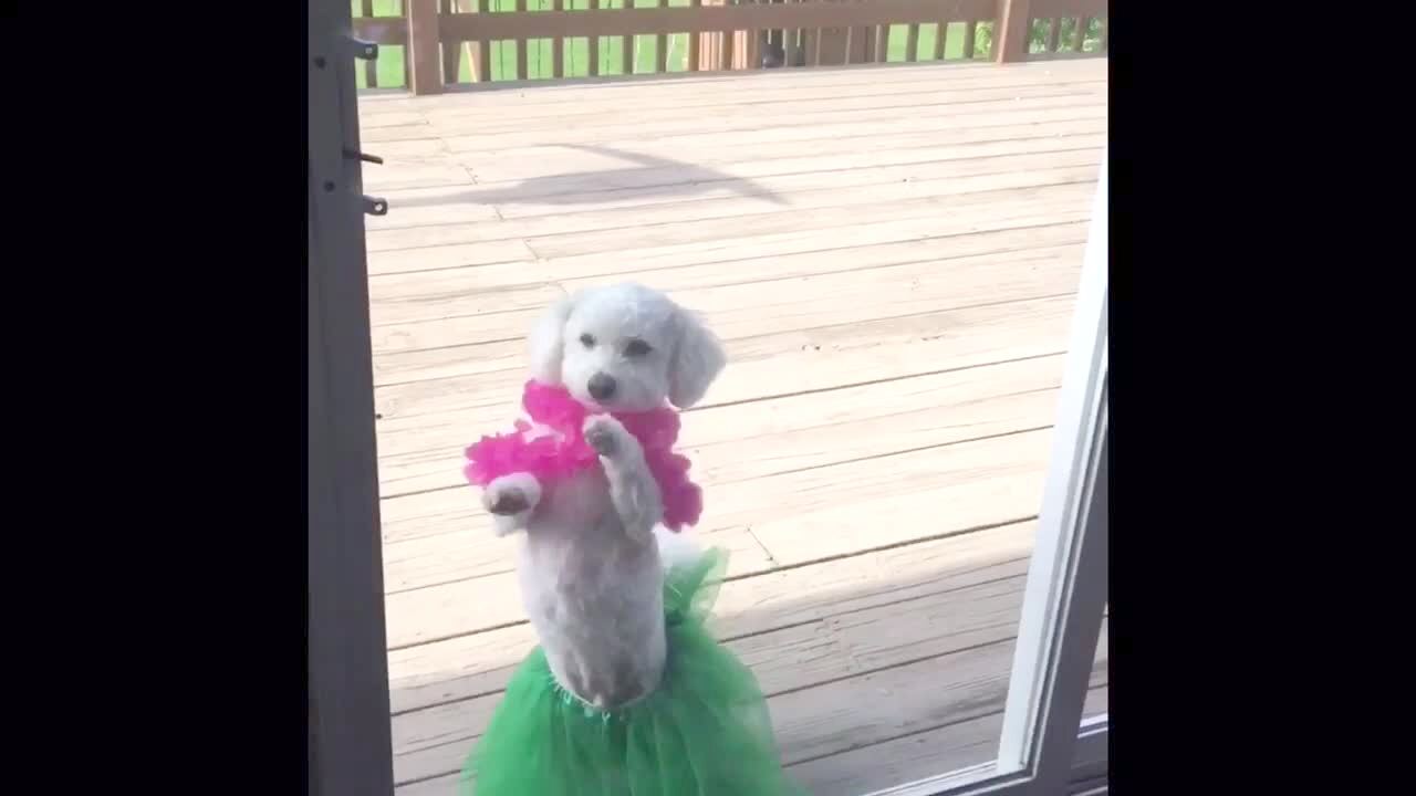 A man proposes to a woman outside, then their dog humps the man's leg while he is down on one knee. Produced video. (music rights not cleared)