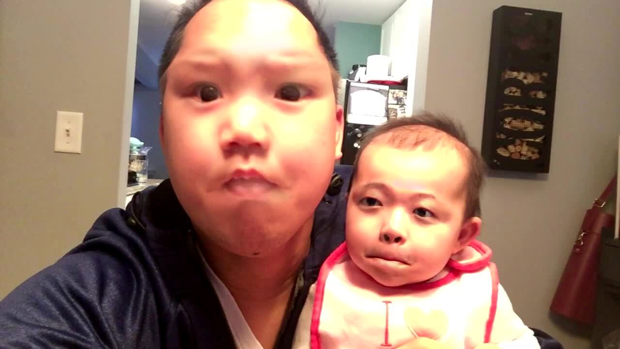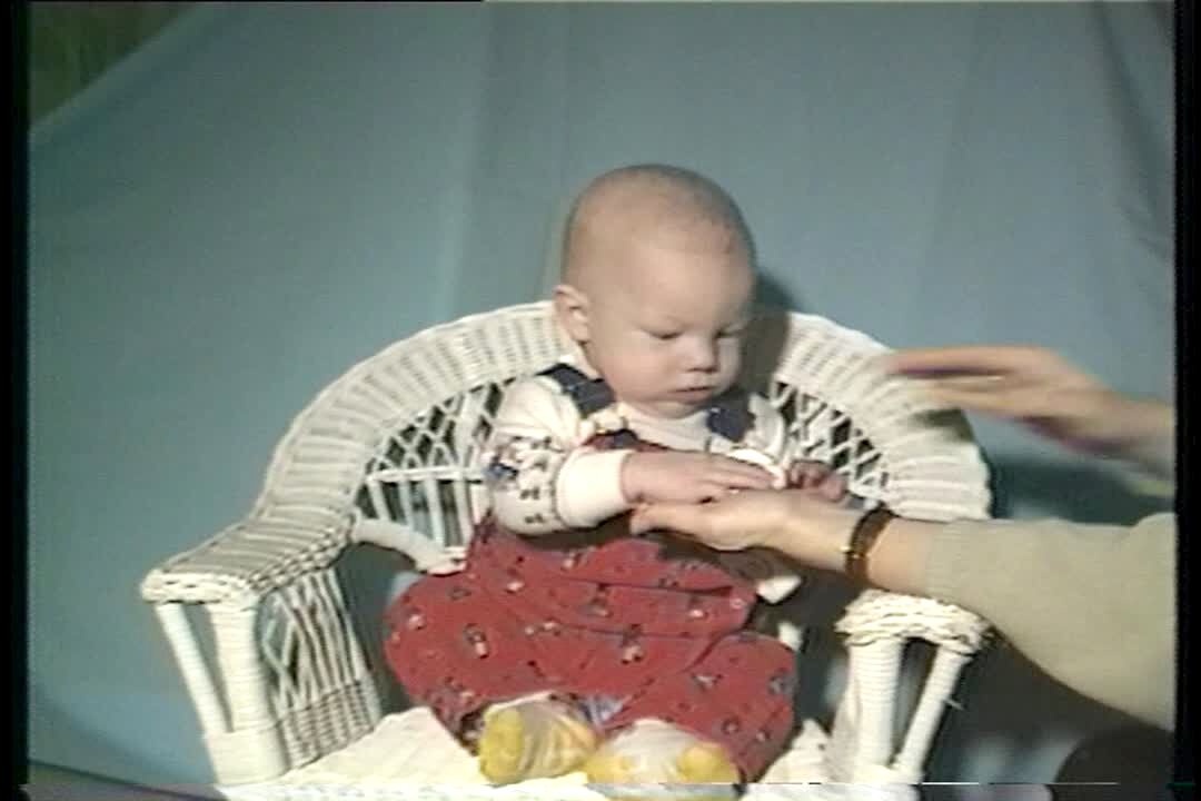 Jordan's Magic hair Formula' First haircut segment. Baby wears toupee after foam is put on head.