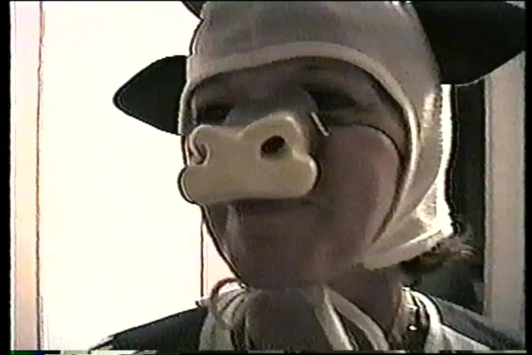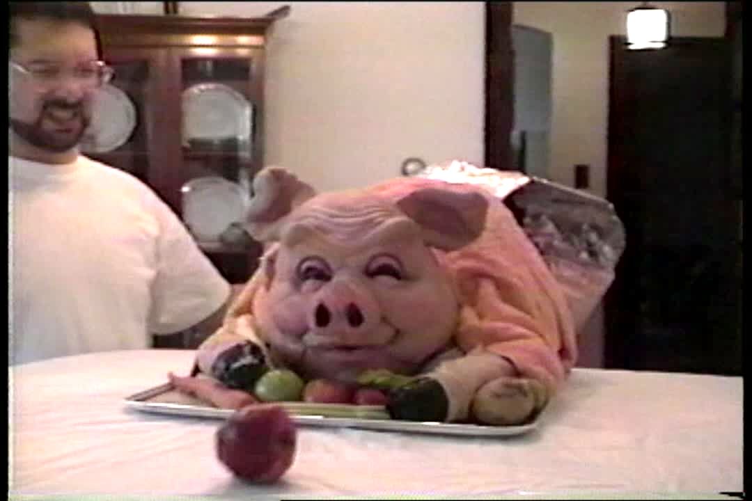 P/V Guy served dinner says "I Hate Pork", dinner is a talking pig who contradicts him