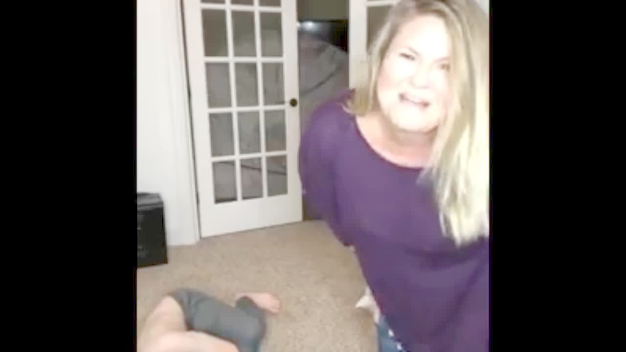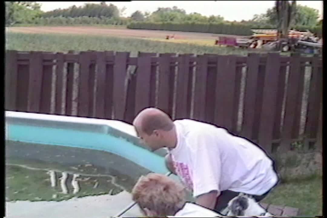 Bill Danyluk and his mom 'play act' by the pool, Bill goes in