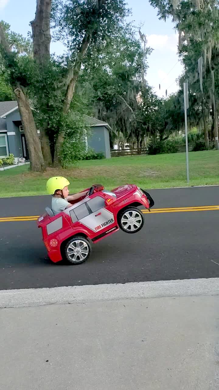 A woman runs down the driveway to try and catch her husband before he drives away when she stumbles and face-plants onto the driveway. The man gets out to help her but forgets to put the vehicle in park. Then the car starts to roll down the street with their kids inside of it, as he runs to jump in and stop it." Security footage.