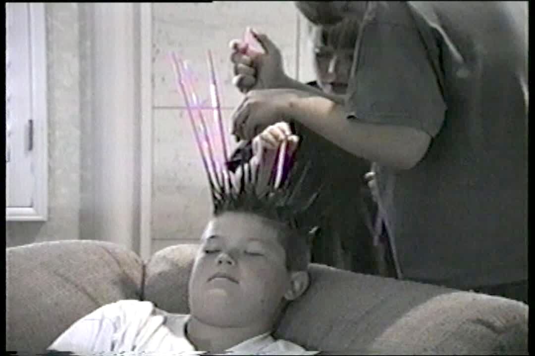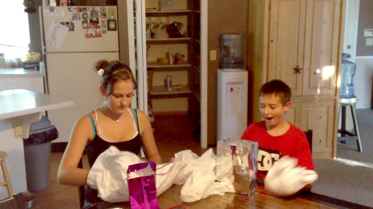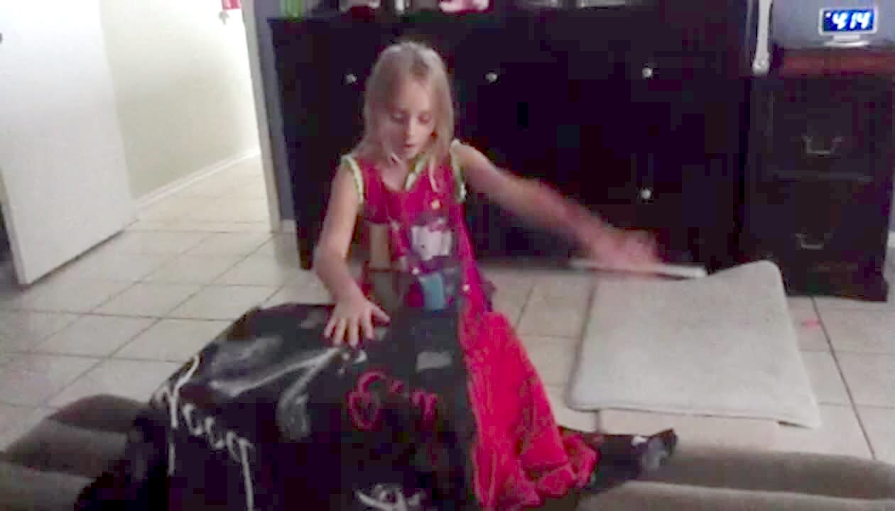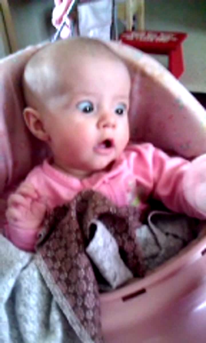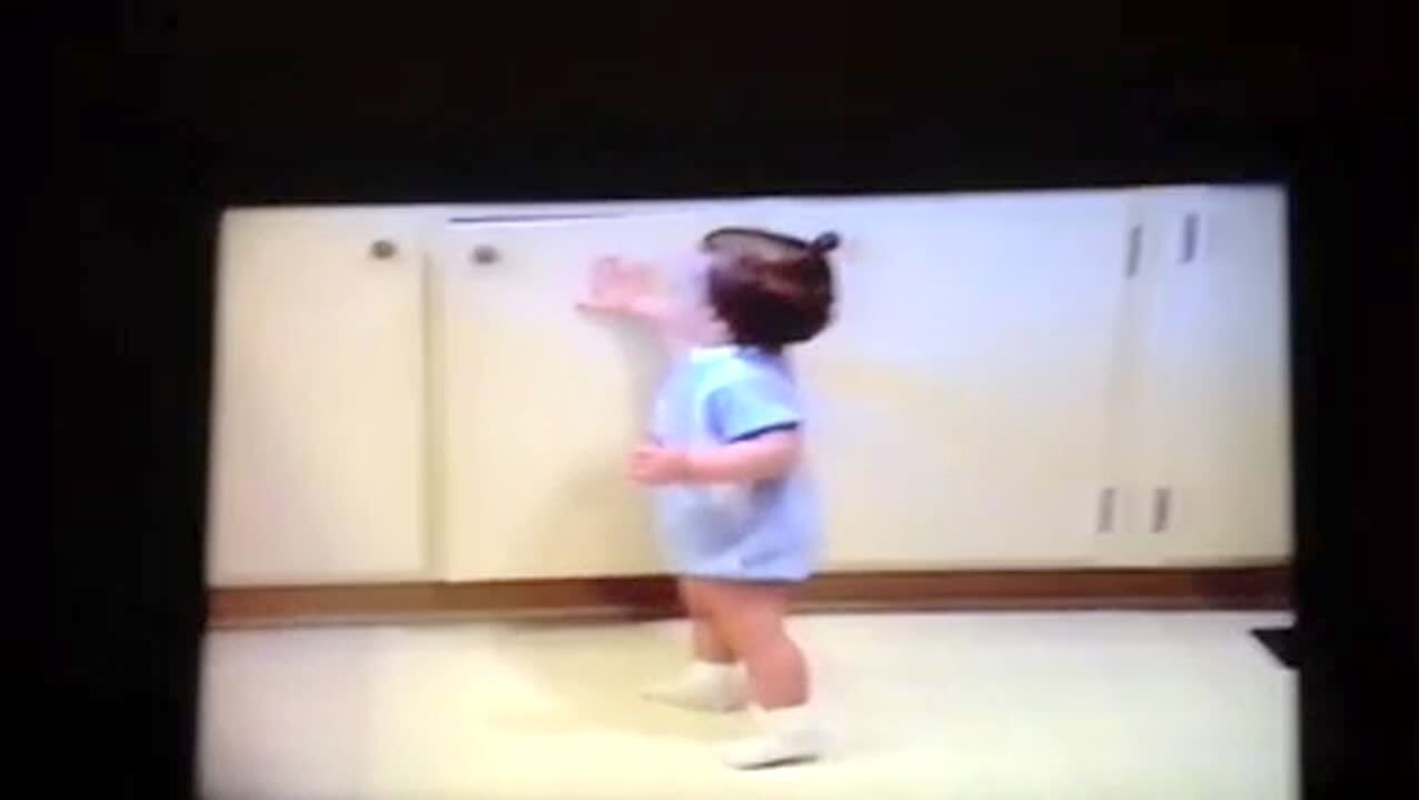 A woman shows a dancing video to her teen girls indoors and they watch and find the video cute until something scares them and they scream, causing them both fall backwards. The woman then shows the video to the camera. One of the girls shows the camera that she's hurt her knee and her sister slaps it. Scare.