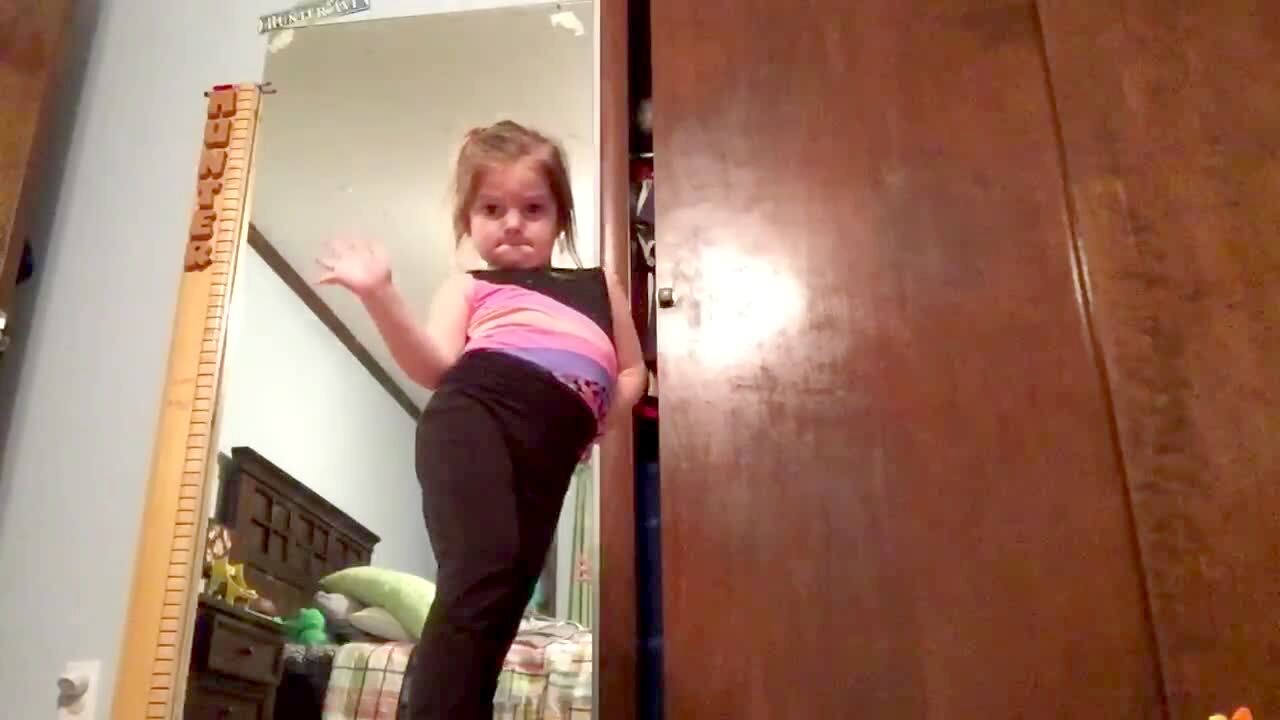 A young girl practices ballet in the living room, and then thunder strikes and the power goes out and she screams and runs away.