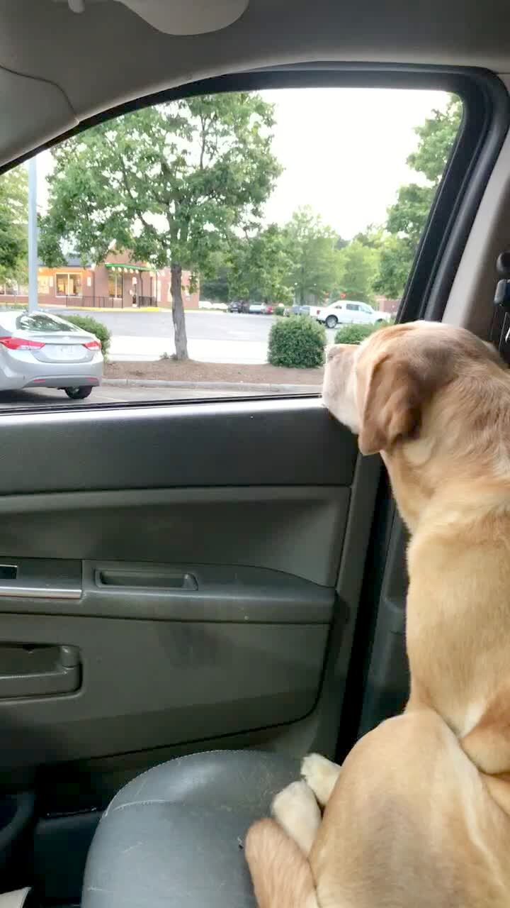 A cow approaches a woman's window in a drive-thru safari and she screams and jumps into the backseat of the car. She spills dry food all over her boyfriend's car.