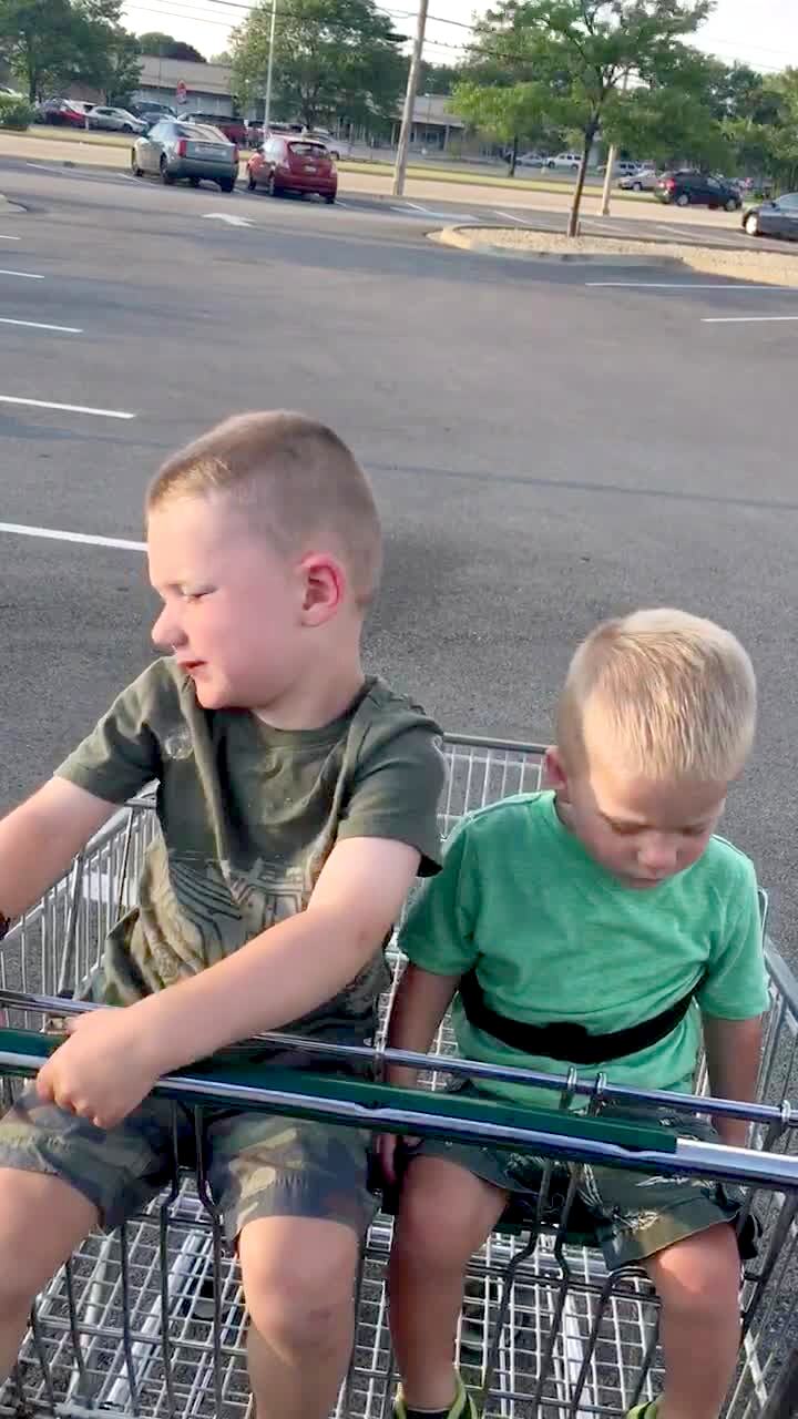 Montage of a woman at home who finds her tot boy asleep in places such as in a box, under a bed, or at the top of a staircase.