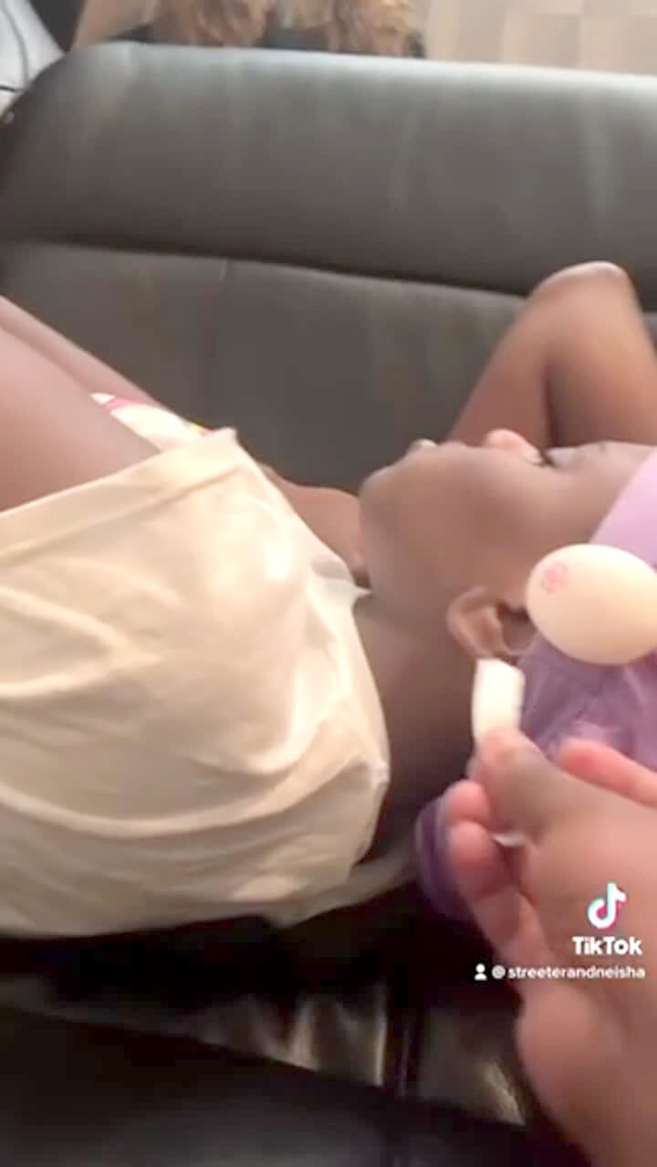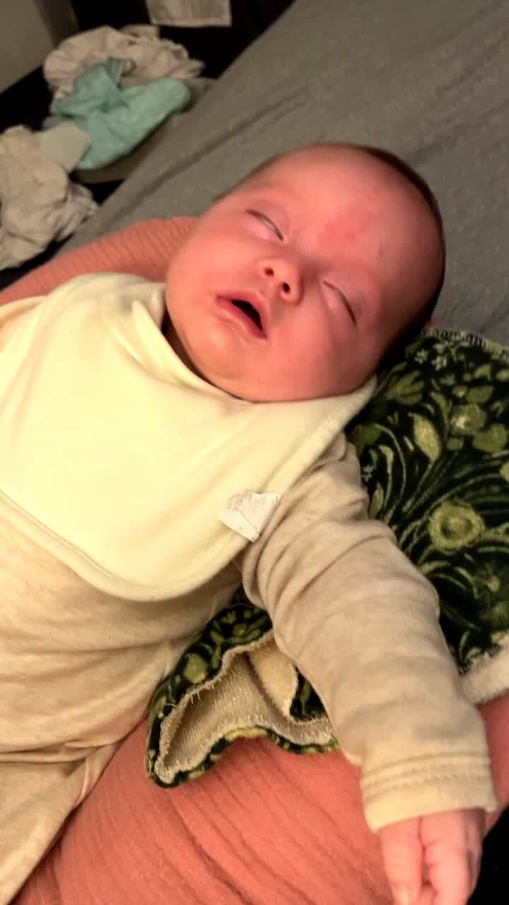 Milk hits baby triplets differently: 1st triplet cries and wants more milk, 2nd triplet is spaced out and 3rd triplet is completely out and sleeps.