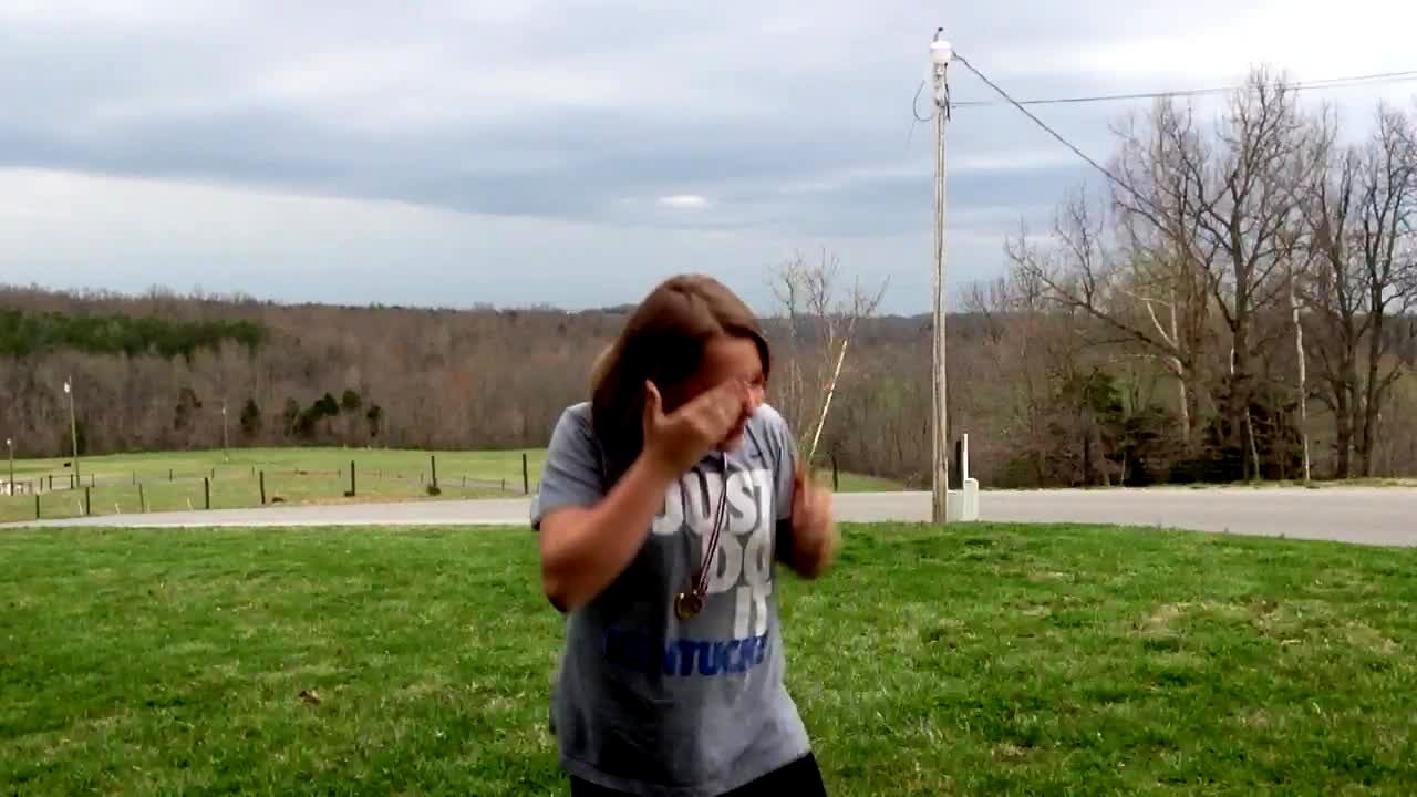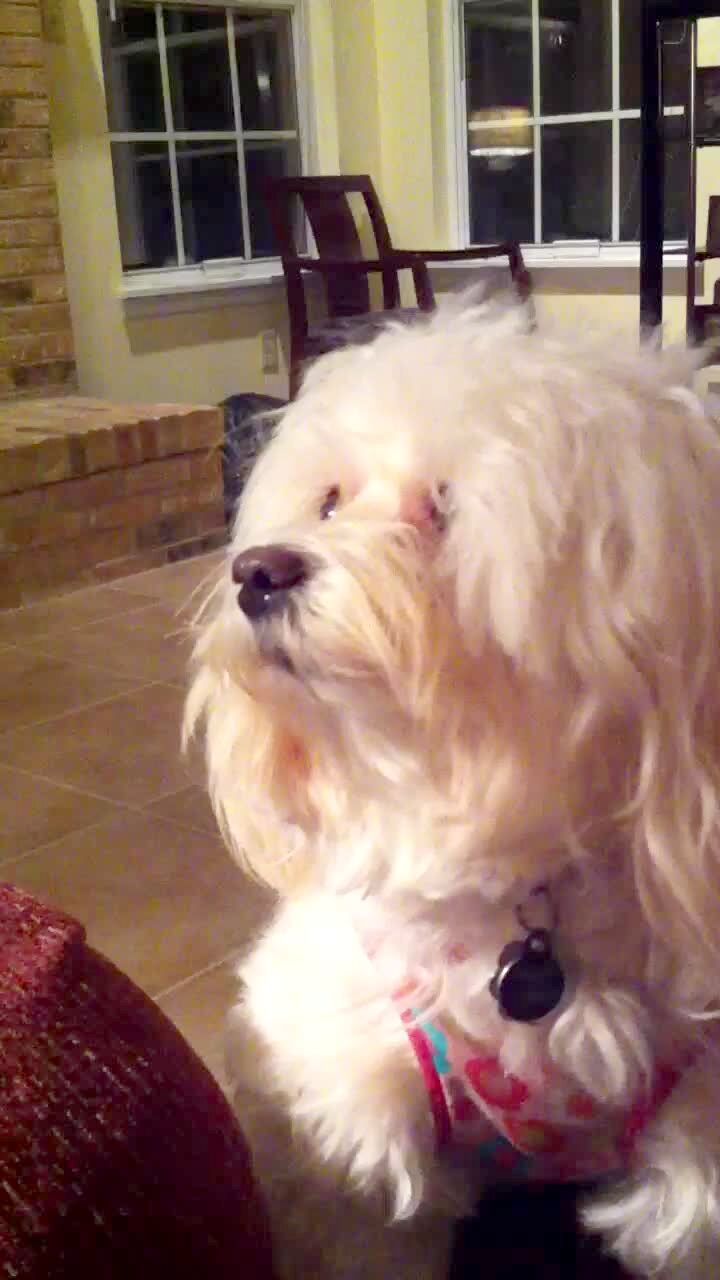 A pit bull dog growls/ screams while dangling from a tree branch by its teeth outdoors. What's that sound?