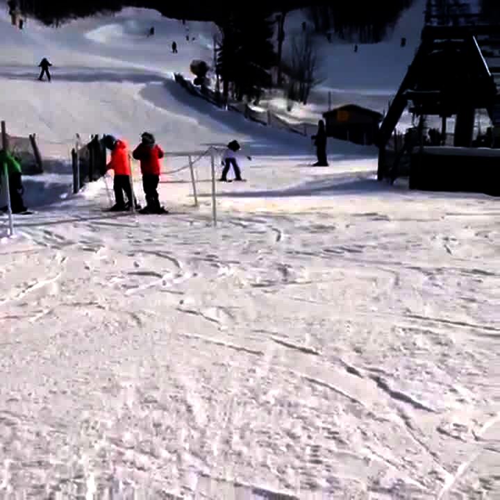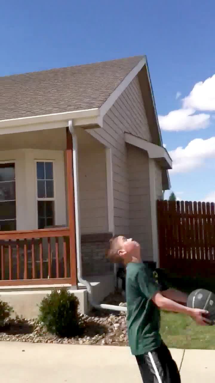 A little boy jumps trying to kick his own butt. Short tail.