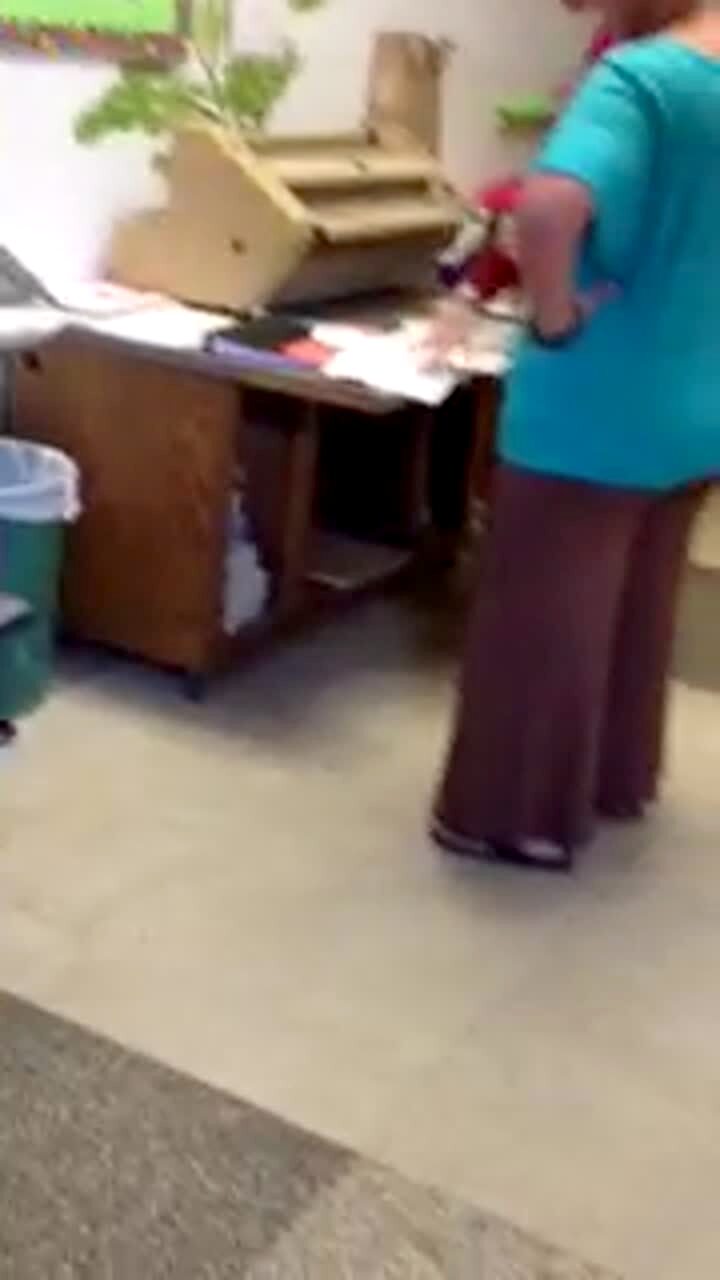 A person drives a wheelchair over a sheet of bubble wrap indoors, causing a cat to jump and run away.