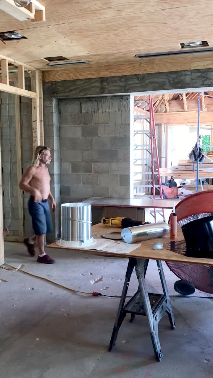 A woman kicks a hole in a wall at home, but her shoe gets stuck in the wall, and she falls down. Video displayed sideways.