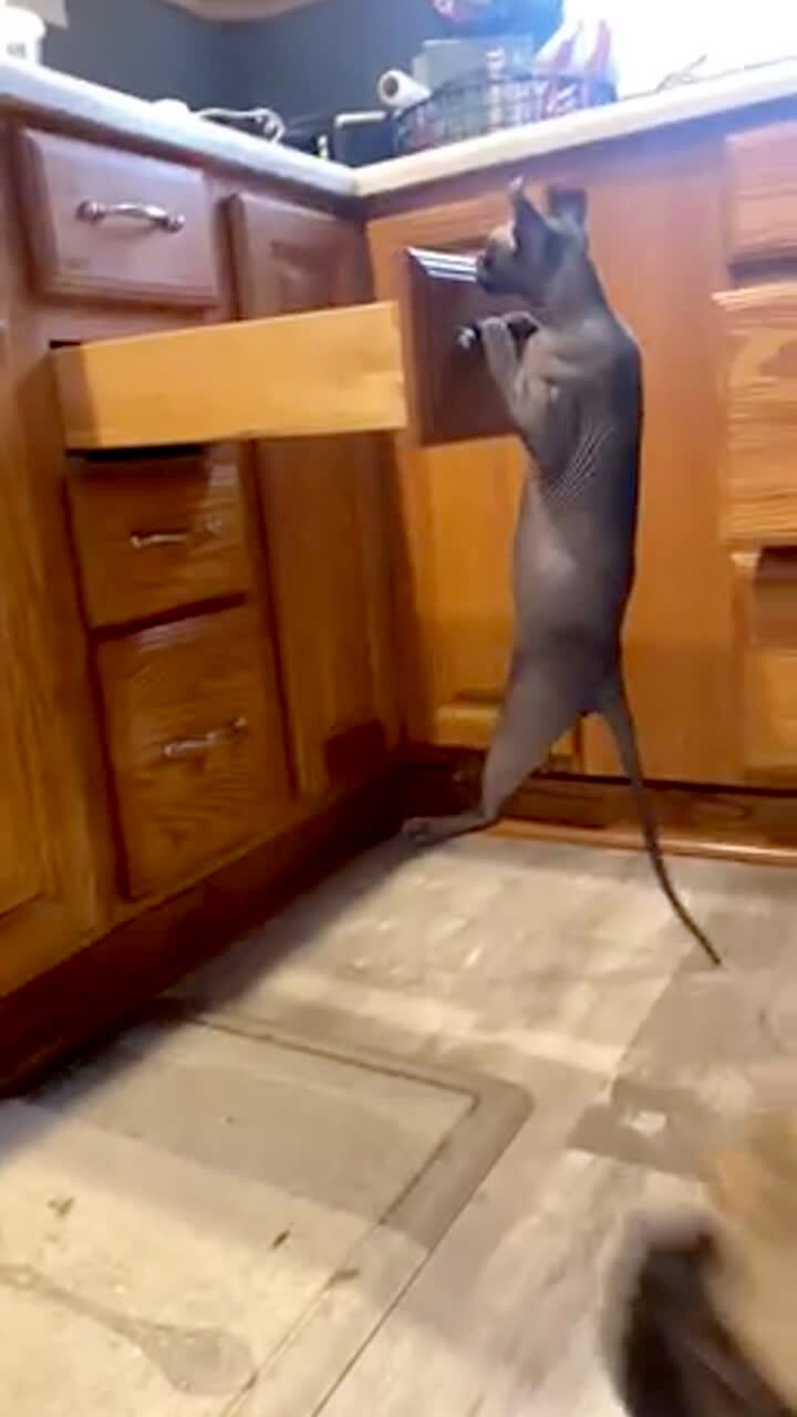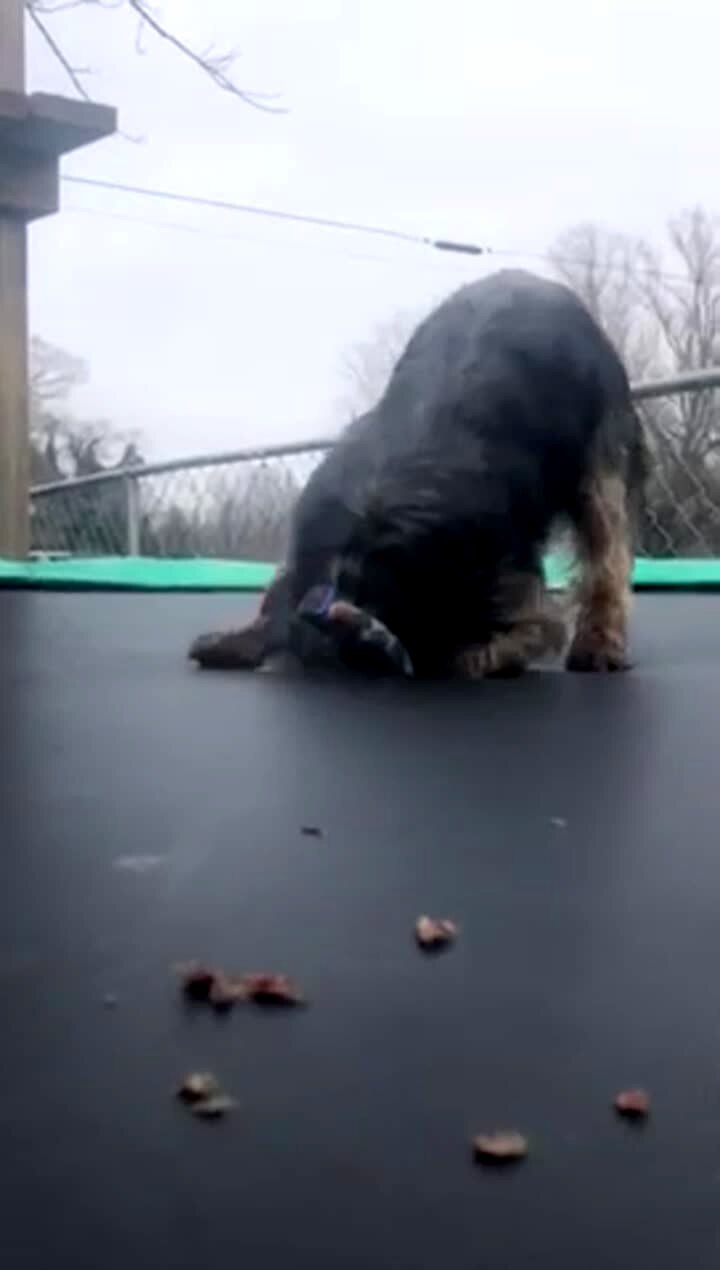 A Boston Terrier dog on a bed holds money in its mouth while growling and vibrating its body. The dog won't let it go until a woman offers it cheese.