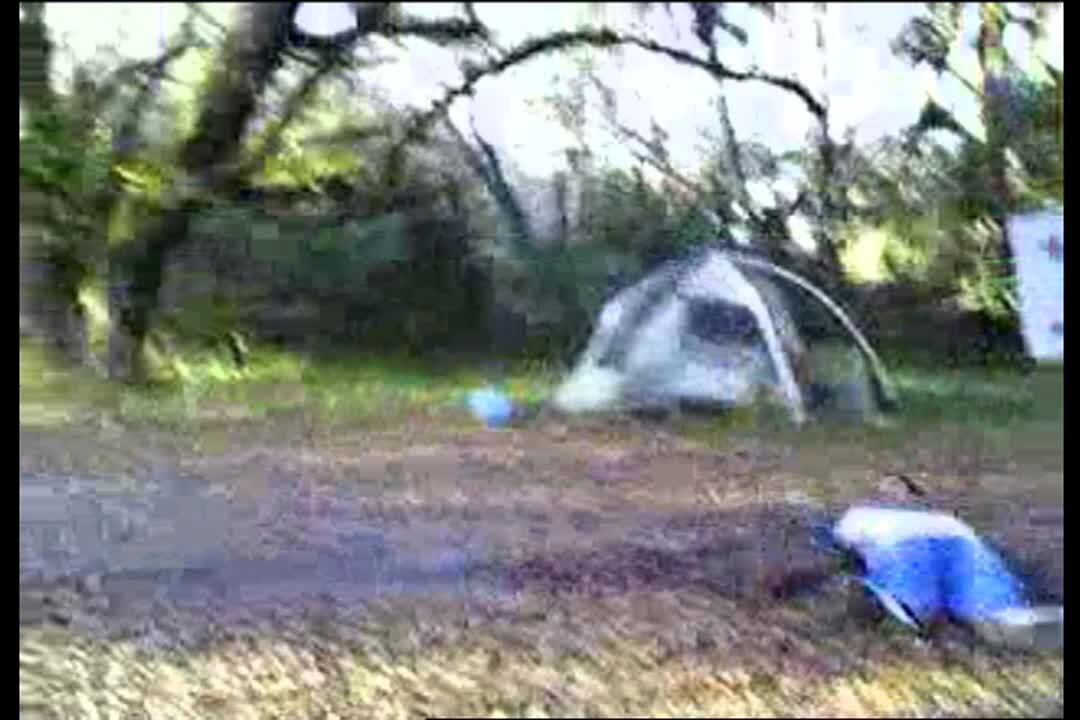 A senior woman waxes her husband's back. The man yells "holy shit" when she rips the first strip off his back and gets out of the chair when she pulls the second strip.