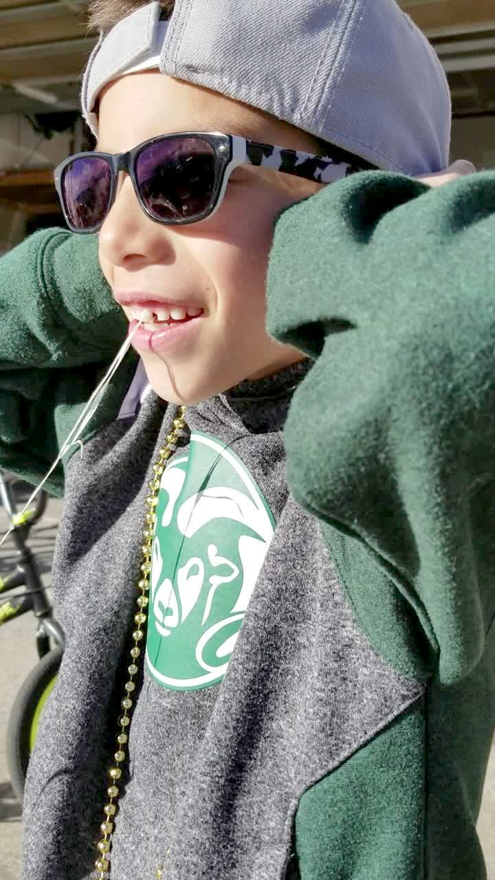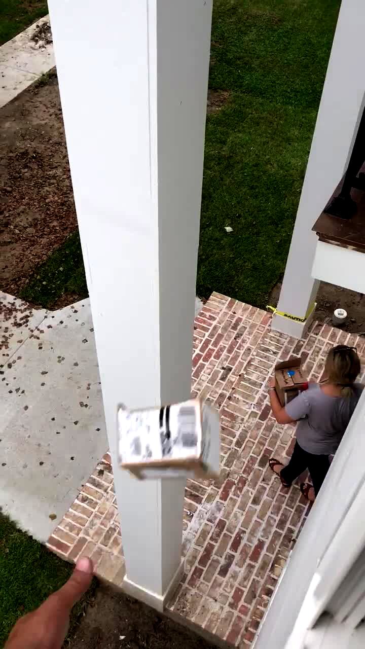 A man opens the sunglasses case of his car and pulls out a nest full of baby praying mantises that crawl all over his car as his wife and kids scream and laugh.