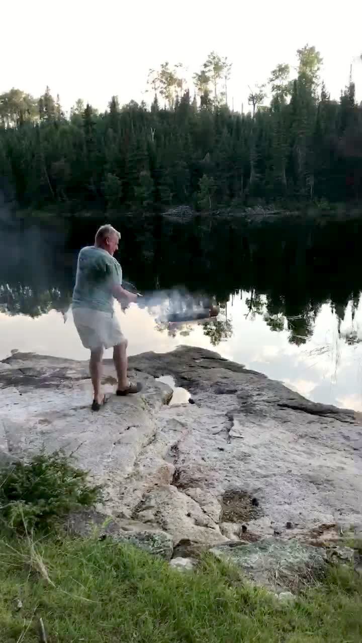 A man drops his electric razor in the toilet as it flushes and the razor is now stuck inside as it makes a loud buzz noise.