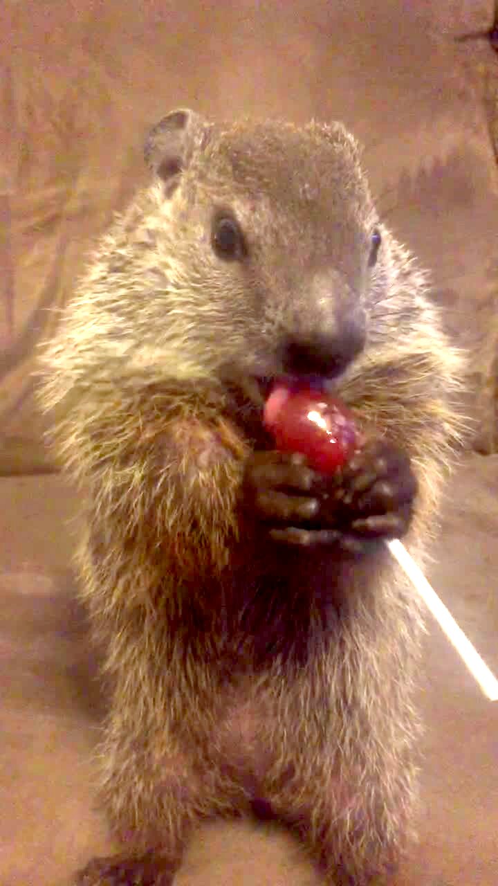 A squirrel grabs an apple core from a person and makes a funny noise as she eats it outdoors.