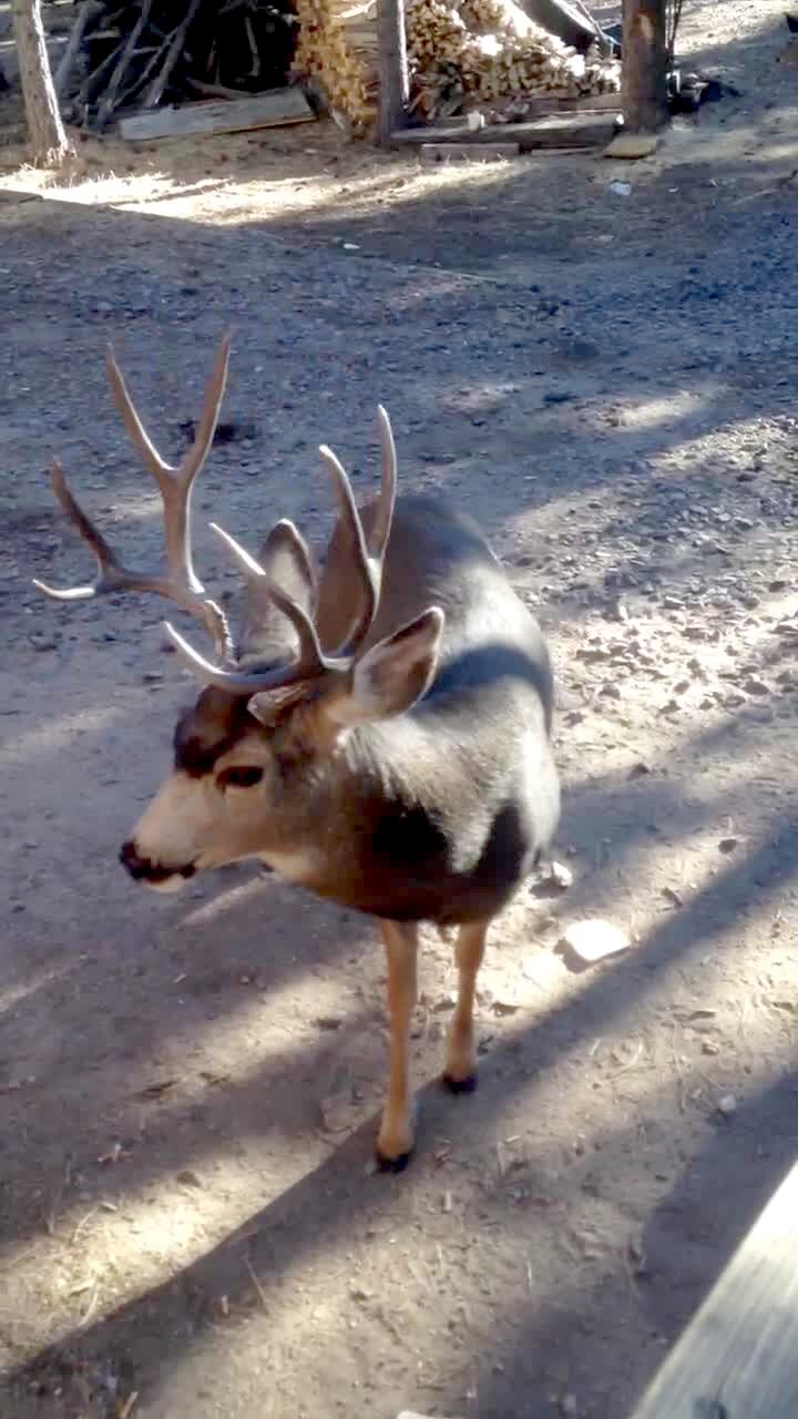 A chihuahua dog spins in circles as he goes down stairs indoors.