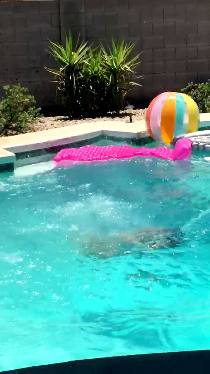 A girl and boy wear snorkel goggles beside a pool and blow out of their nose to make funny noises repeatedly. Name that sound.