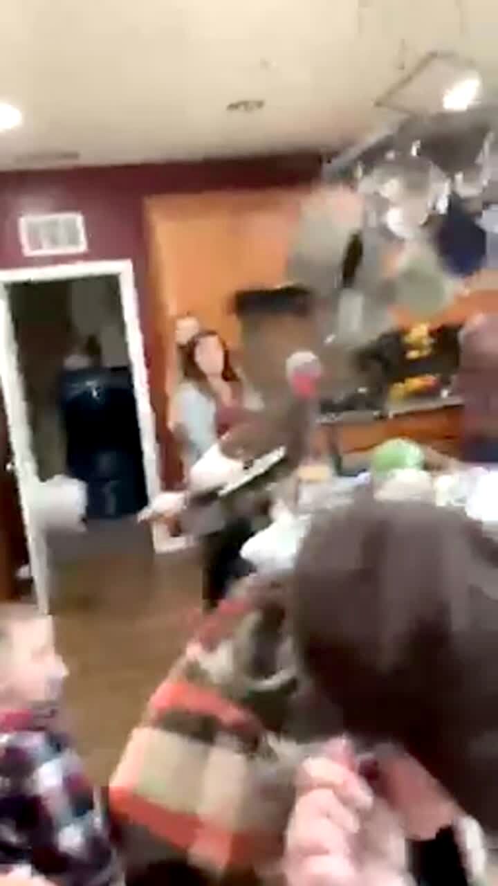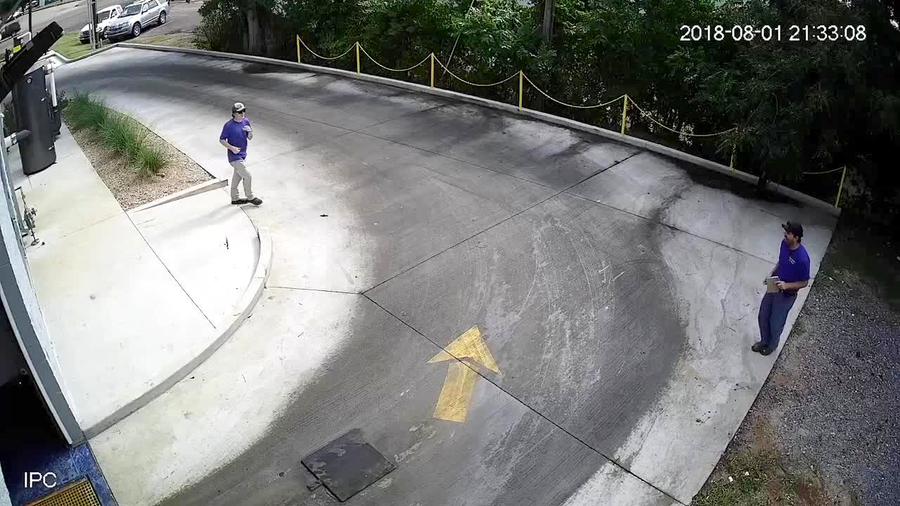 A man gets in a parked truck on his lunch break. He reaches into a heater box and grabs a can of chili. The chili explodes in his face. Chili covers the car as he runs away.