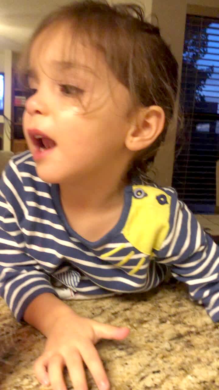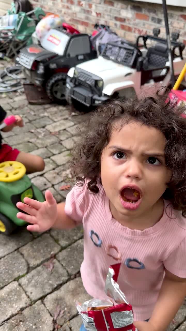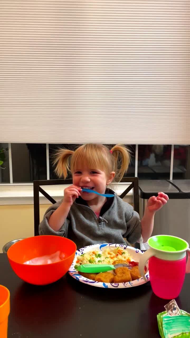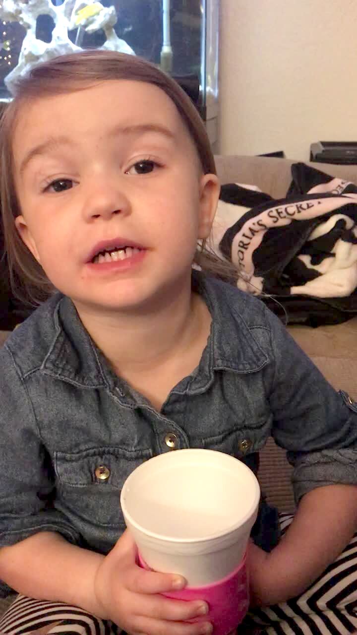 A tot girl babbles, "Okay, I don't have it more" when her mother, father, and young sister get to her while they sing, "Who Stole the Cookie from the Cookie Jar" at the dinner table.