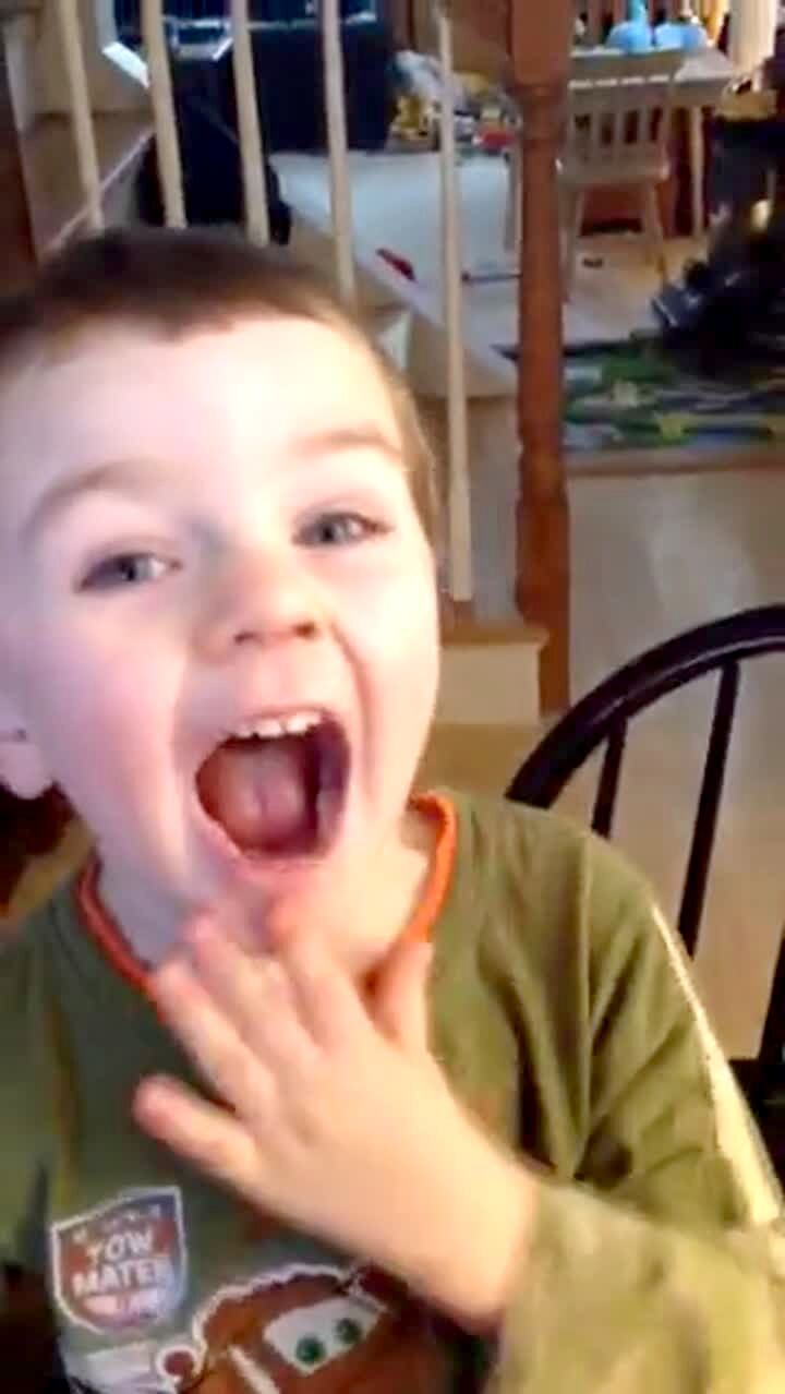 A father playing Don't Break the Ice with his children and tells his youngest son to tap lightly on the game and knock out only one piece. Instead the boy repeatedly slams on it with a toy hammer and knocks all of the pieces out at once.