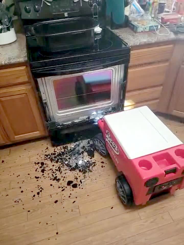 After two young siblings get into the grease bucket from a barbecue grill, they smear it all over a themselves, as well as the patio and dogs.