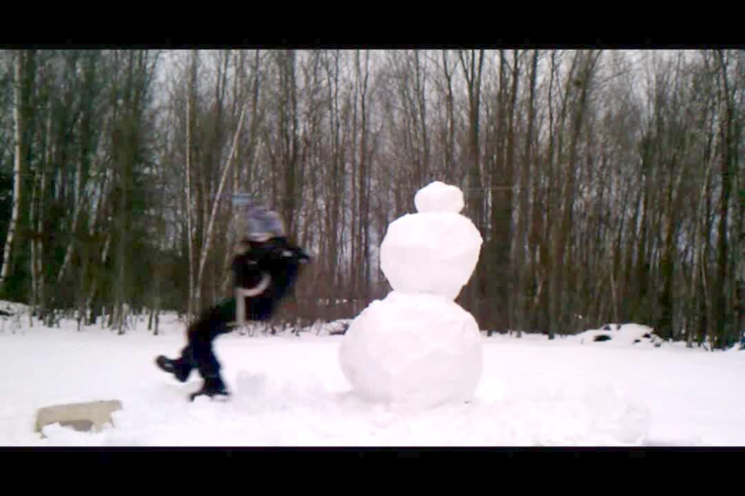 A.A. Fun with snow Perspective of a snowman looks big then man steps on it